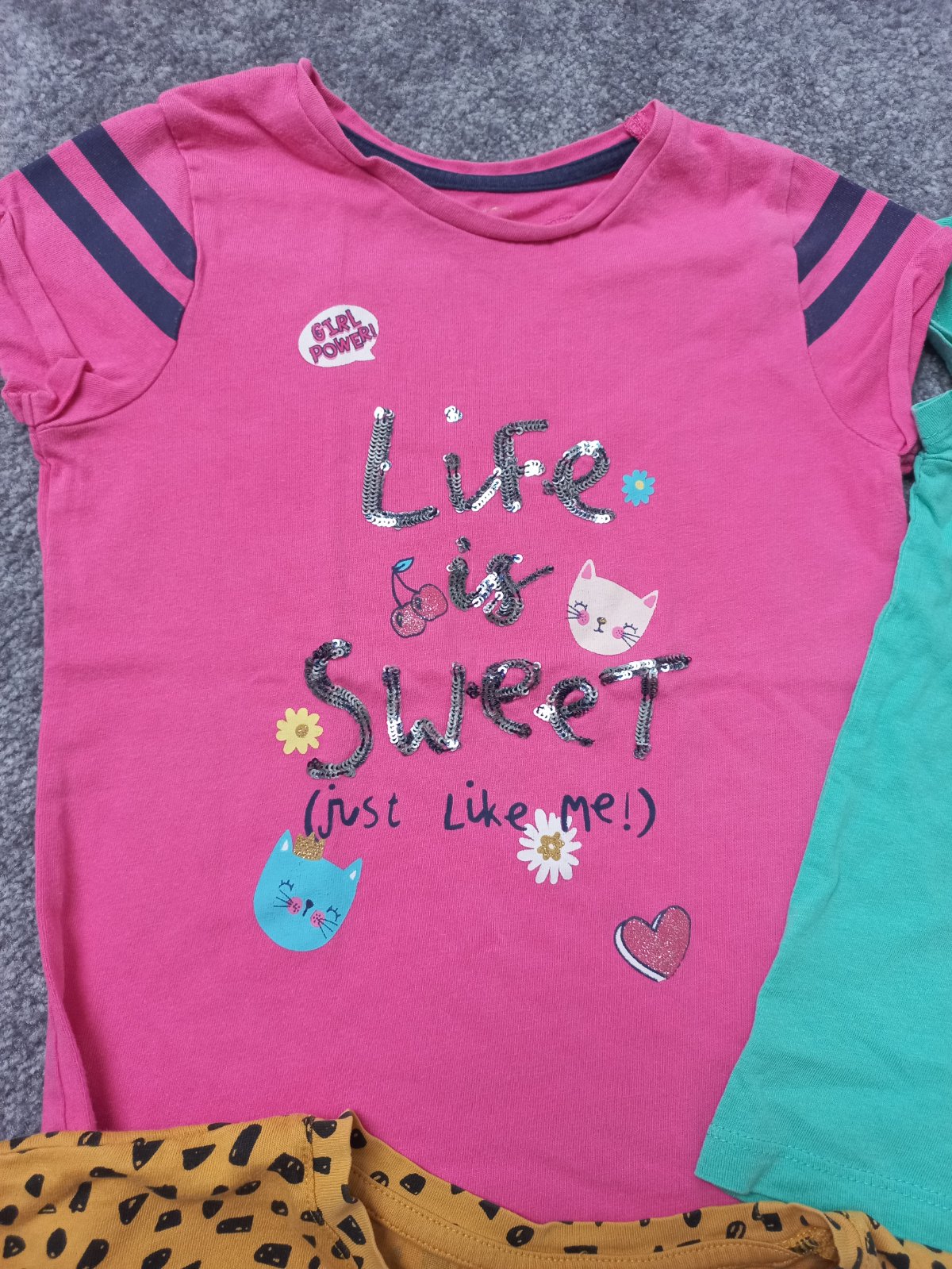 Nosene kratke tricka bez poskodenia, velkost 110-116, znacky Mothercare, Pepco, Tchibo, F&F, Lindex. Spolu 6€. V pripade zaujmu aj jednotlivo.
