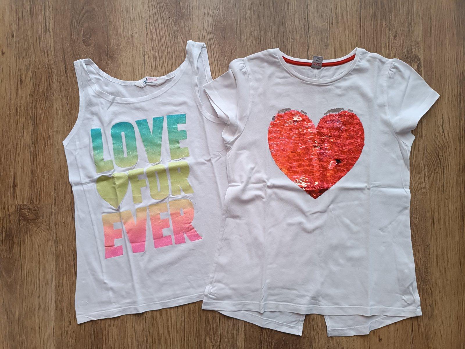 Predám používané, nepoškodené, nezničené bavlnené tričká pre dievčatá, značky H&M a TU, rozmery - d 54 - 58 cm, š 37,5 - 40 cm, cena spolu