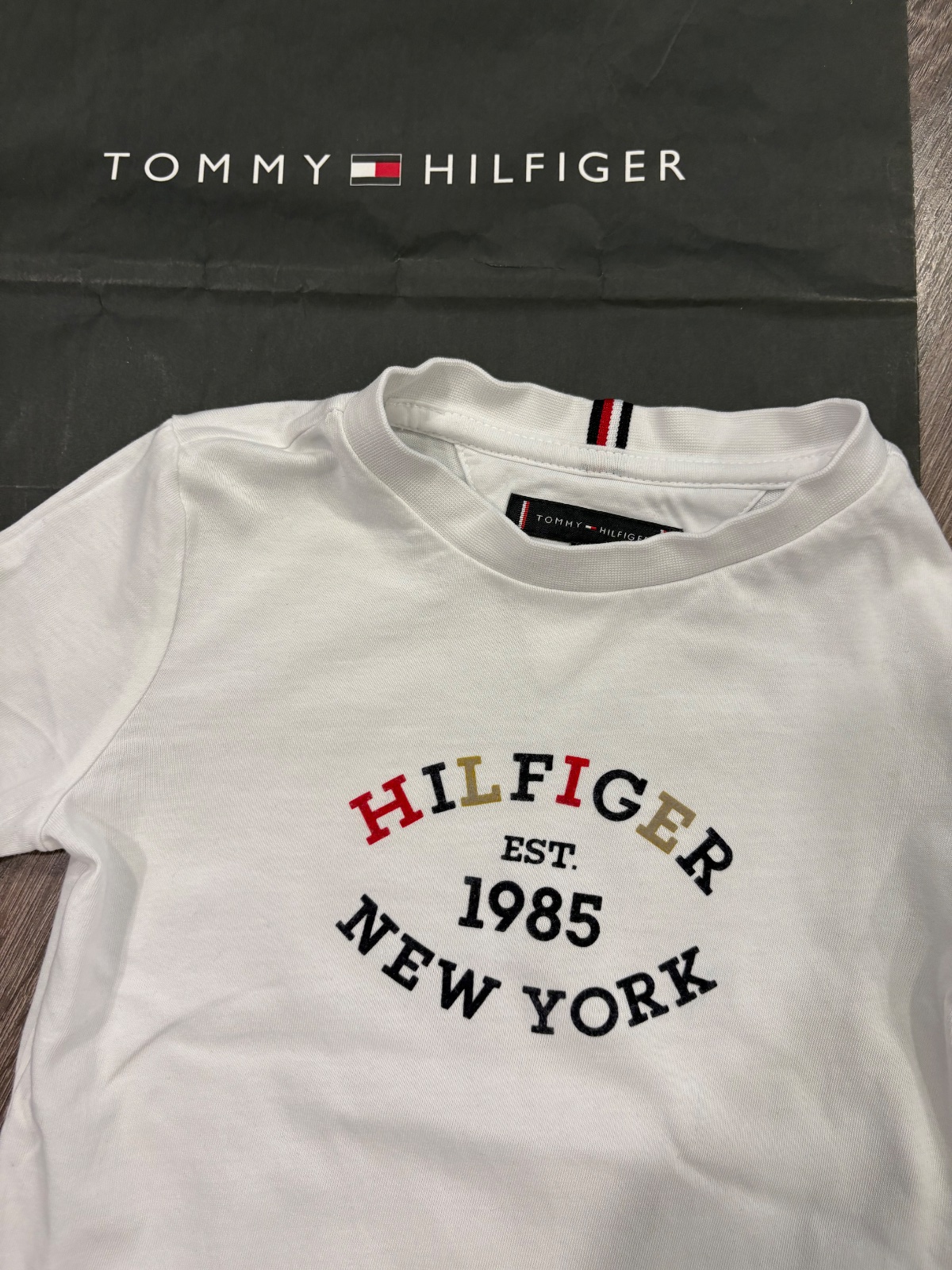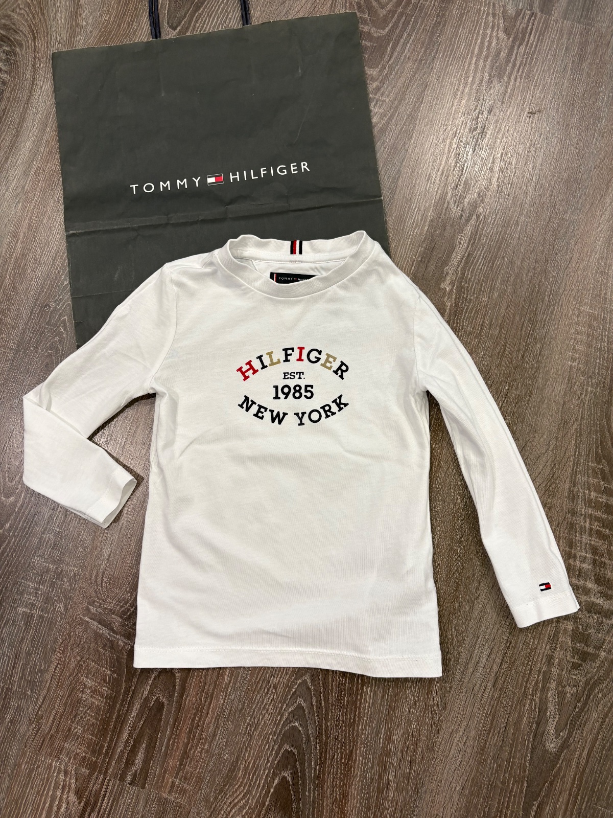 09.Tommy Hilfiger tričko s dlhym rukavom vo velkosti 110, dlzka je 45cm,dlzka rukava od krku je 45cm a sirka v podpazusi je od 31x2cm do 36x2cm