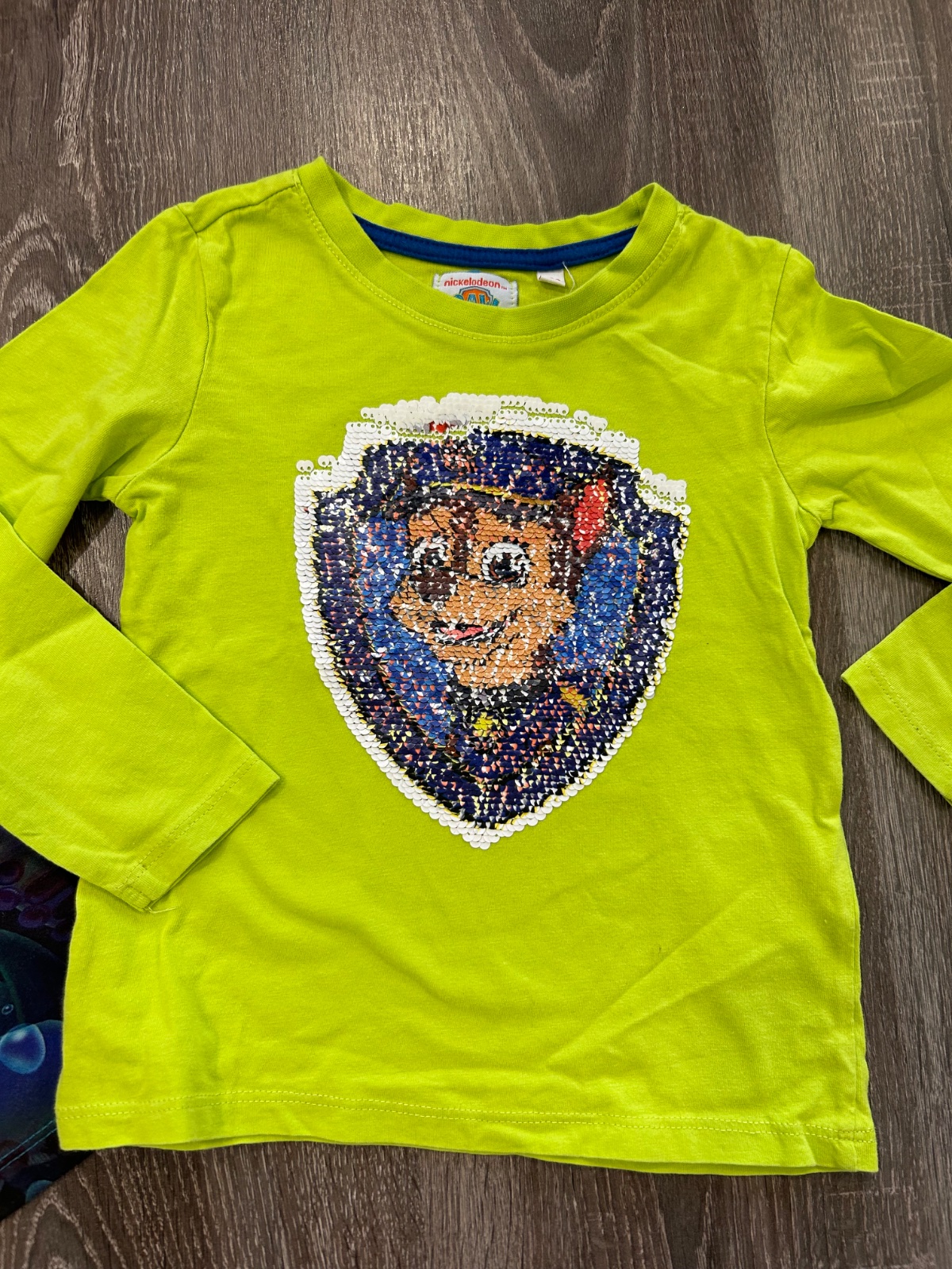 87.Paw Patrol detske tricka vo velkosti 104.Dlhe tricko neonovo zelenej farby s flitrami ktore sa pretacaju…