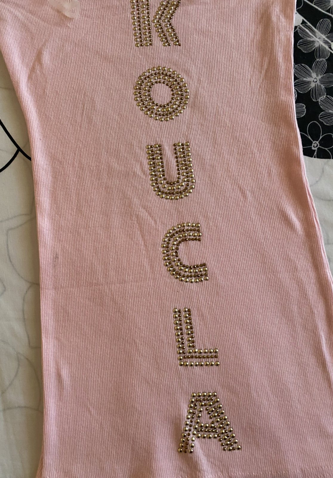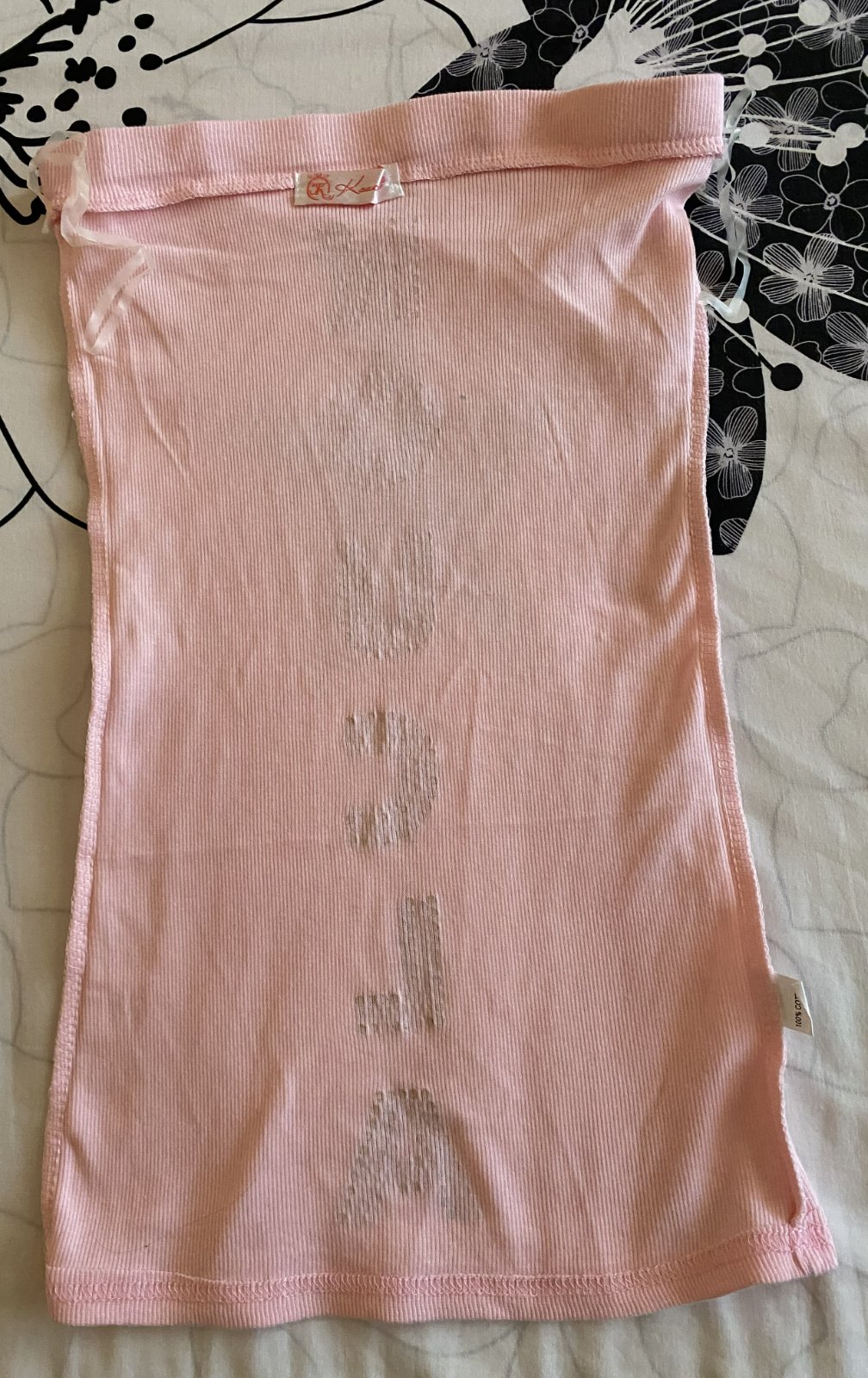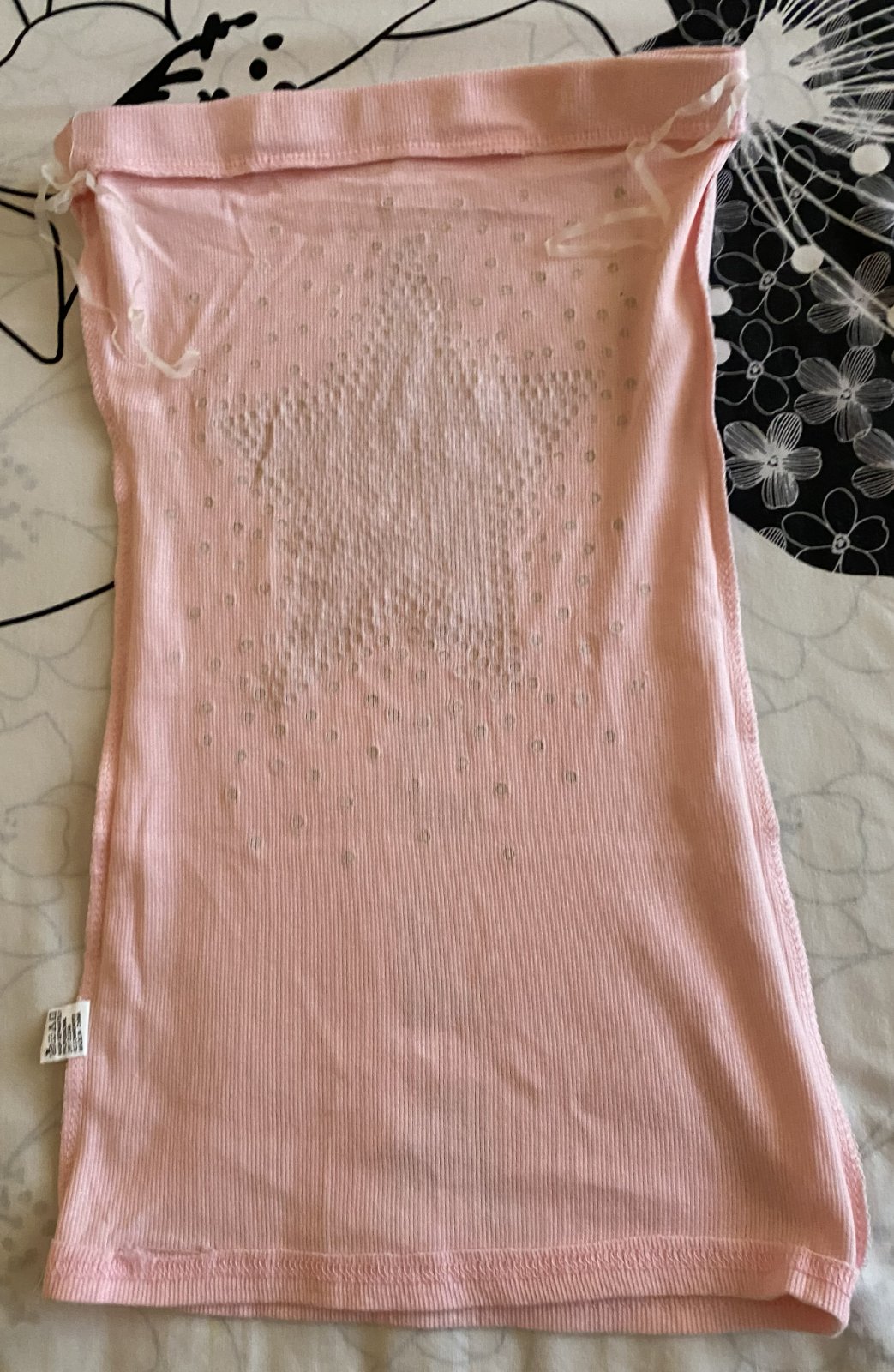 Bavlnené vrúbkové tričko - top bez ramienok KOUCLA v. S, nenosené, iba opraté, ešte mám k nemu aj visačku, materiál 100% bavlna - rebrový vzor, pružný materiál, v hornej časti širšia guma, aplikácie vpredu aj vzadu, pekná bledoružová farba (niektoré foto osvietené). Miery: dĺžka: 50cm, šírka hore: 31-36cmx2 (navlečená širšia guma).