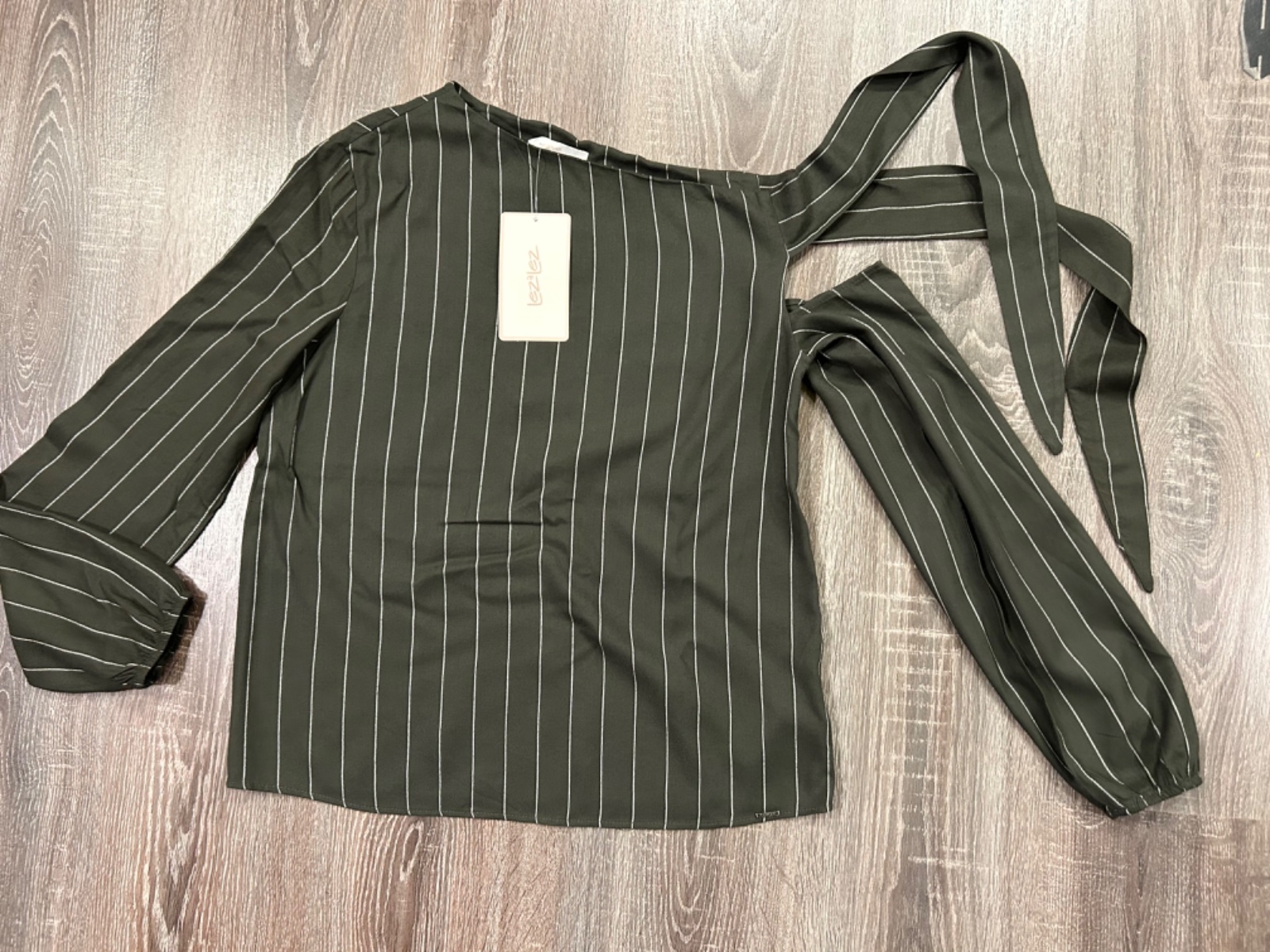 LezaLez nova damska štýlova bluzka,komplet s etiketou,velkost XS,jeden rukav dlhy a druhy rameno volne a masla na boku okolo krku,dlzka je 61cm,dlzka rukava od krku je 75cm a sirka v podpazusi je cca 46x2cm