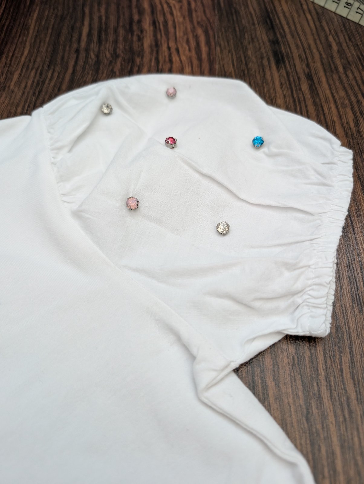 Top stav, 2x oblečené. Veľkosť 140/146. Krásne puf rukávy s kaminkami.