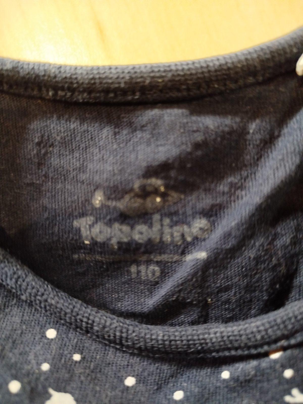 Tričko so všitým svetríkom v.110. Farba je vďaka všitej trblietavej niti omnoho jasnejšia, ako v detaili na druhej foto