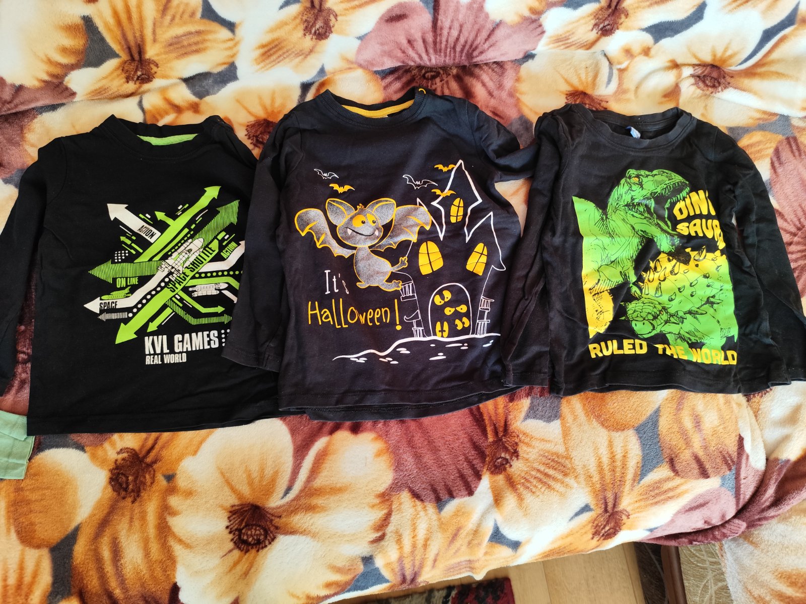 Tričká v dobrom stave, vhodné aj do škôlky. Bledo modré s dinosaurusom pribalim grátis. Pod krkom sú bleducke fliacky, málinko vidno, nešlo mi to oprať. Cena 1€/ks