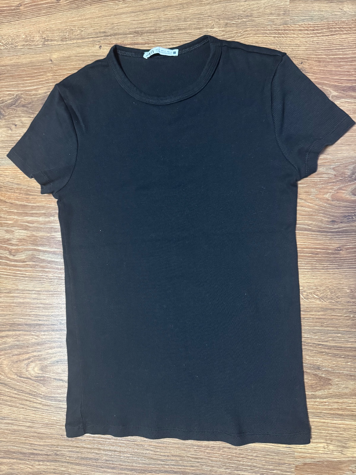 Rebrované tričko v super stave. Farba sýta čierna nevyblednutá. V prípade záujmu rada premeriam.