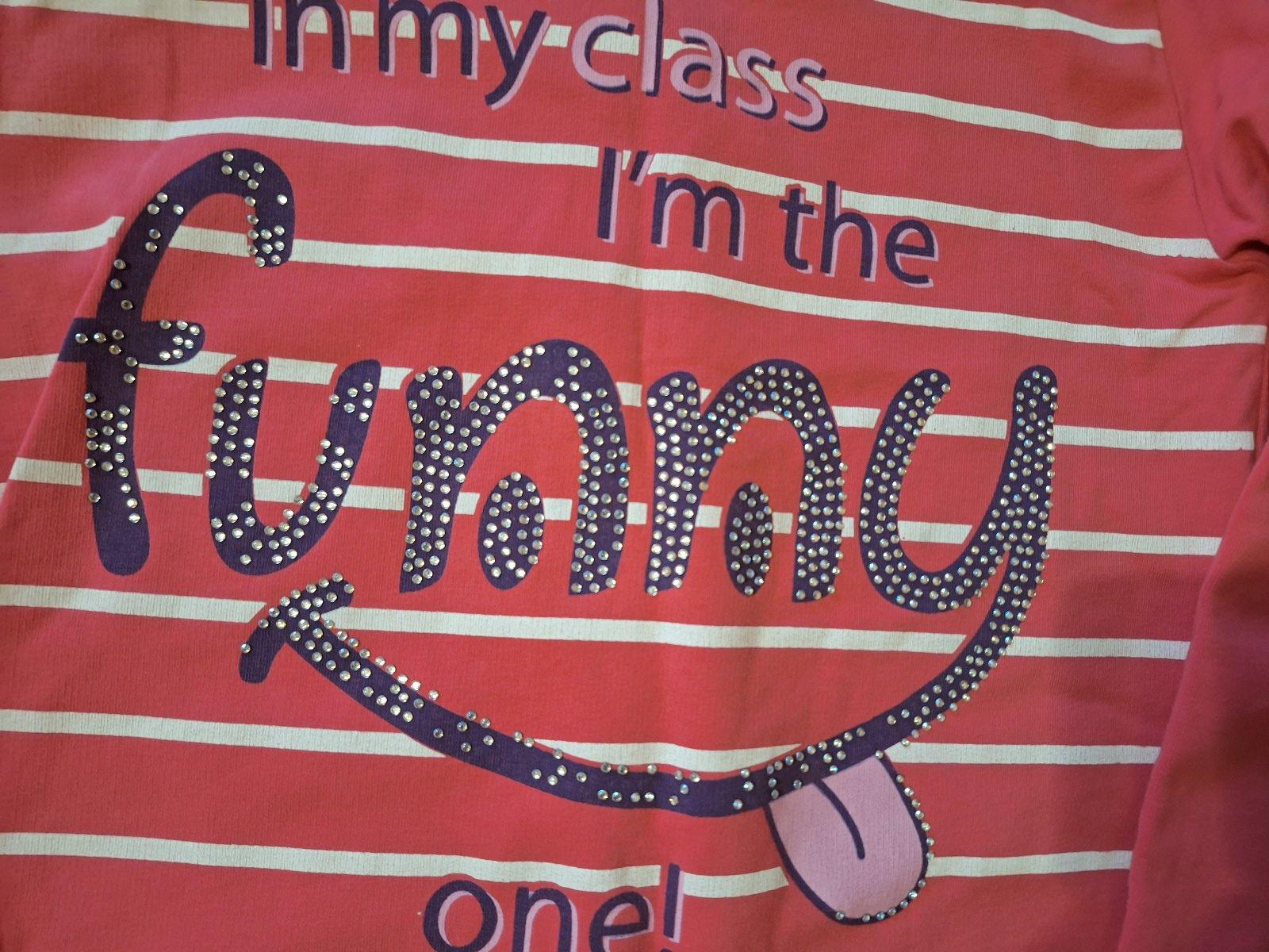 Predá dievčenské mikinové tričko s veľmi peknou potlačou, s trblietkami a nápisom, veľmi zachovalé bez poškodenia. Rukáv je na patent a patent je aj ma spodu ale nie pevný. Veľ. písaná 164, ale je to malý strih, skôr veľ, na 152. Farba trošku tmavšia ružová. cena 6,-€ s poštovným