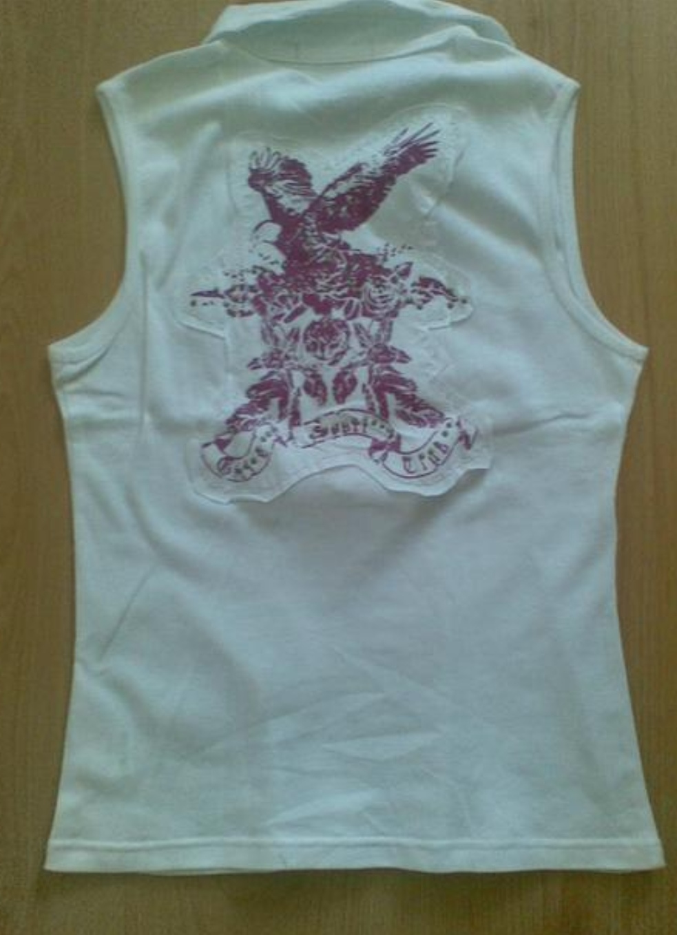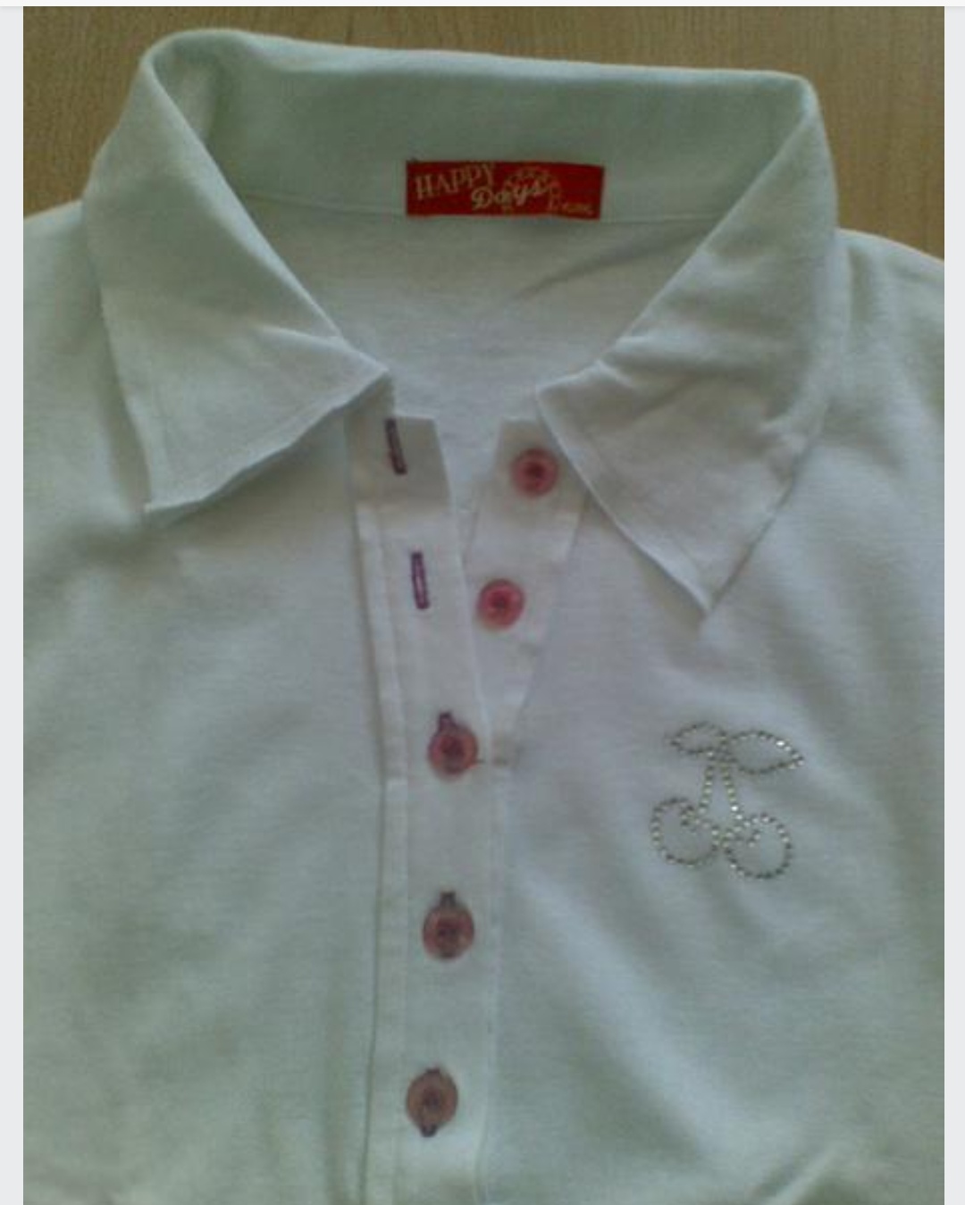 Vpredu zapínanie na gombíky, aplikácia čerešničiek, vzadu na chrbte obrázok, 1x oblečené, veľkosť píše XL/XXL ale nie je také veľké.