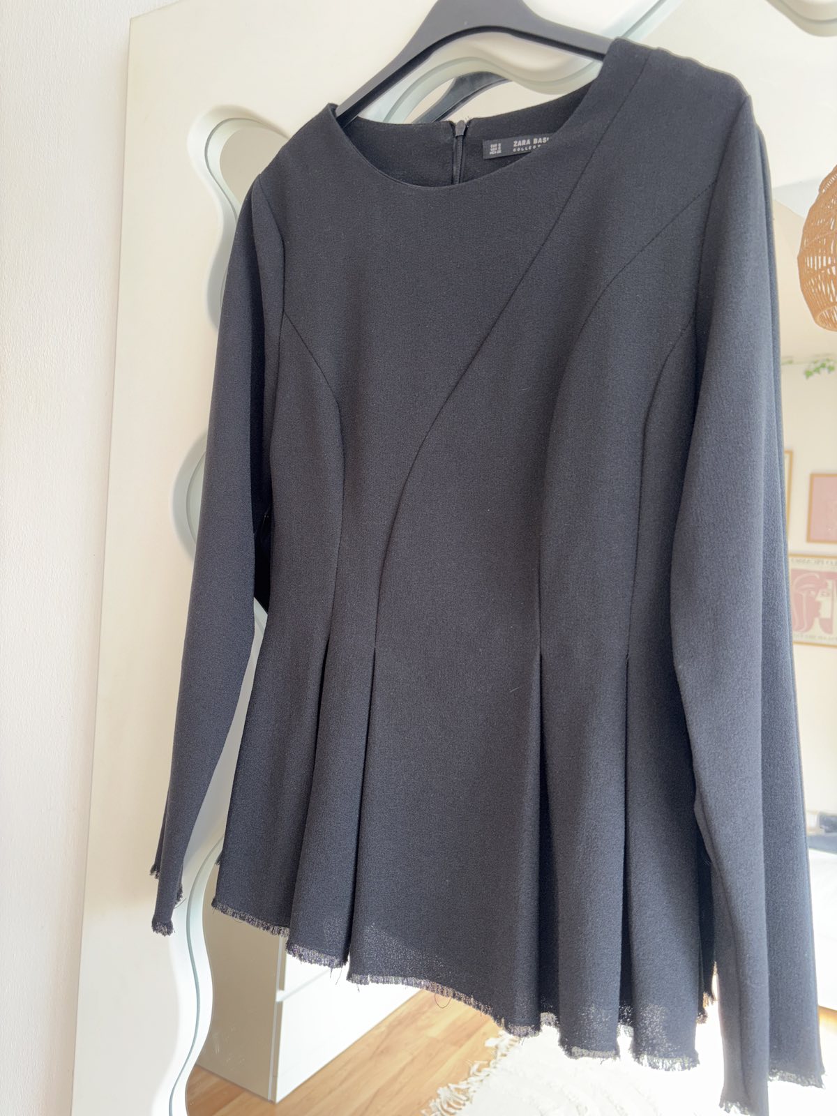 Bez známok nosenia, sýto čierny, nepruzi, veľkosť S, šírka pod pazuchami 43 cm, dĺžka 64 cm