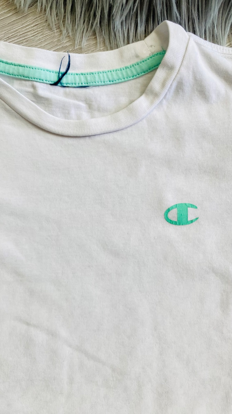 Detské tričko Champion, veľkosť 140 (štítok je žiaľ odstihnutý) dobrý nosený stav. Rozmery : šírka 2x39cm, dĺžka 53cm, rukáv od ramena 15cm.