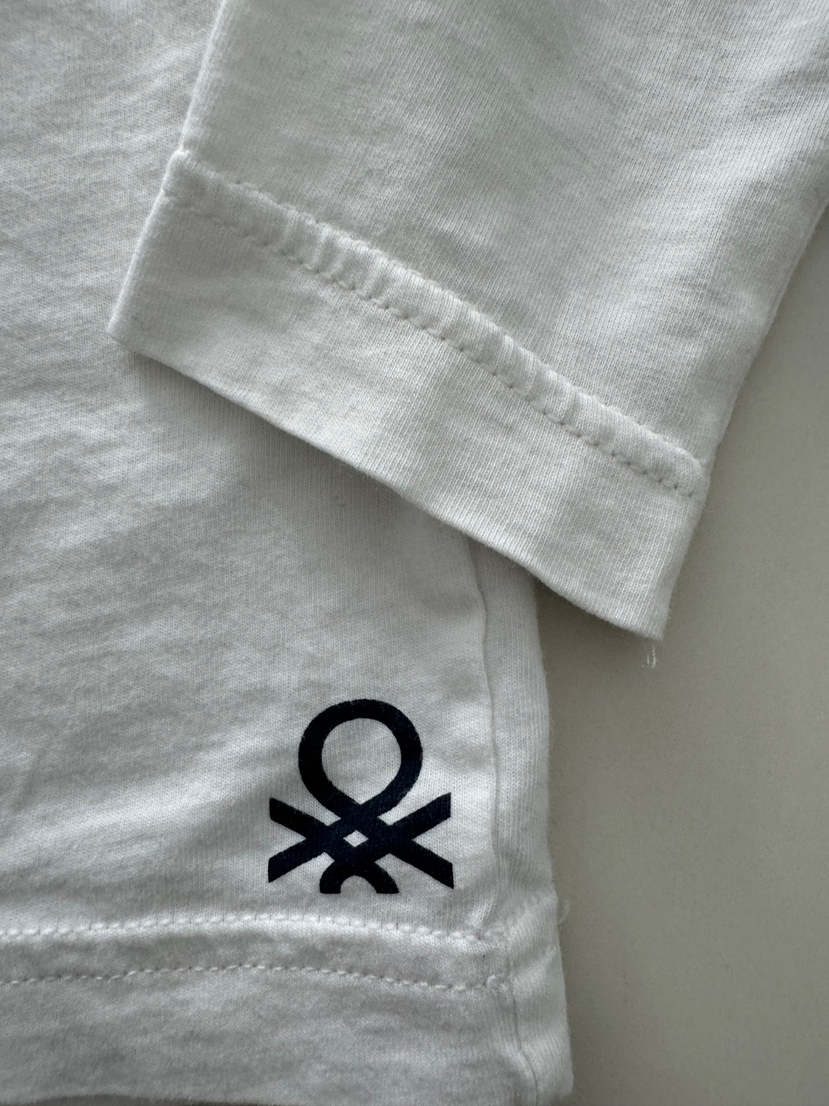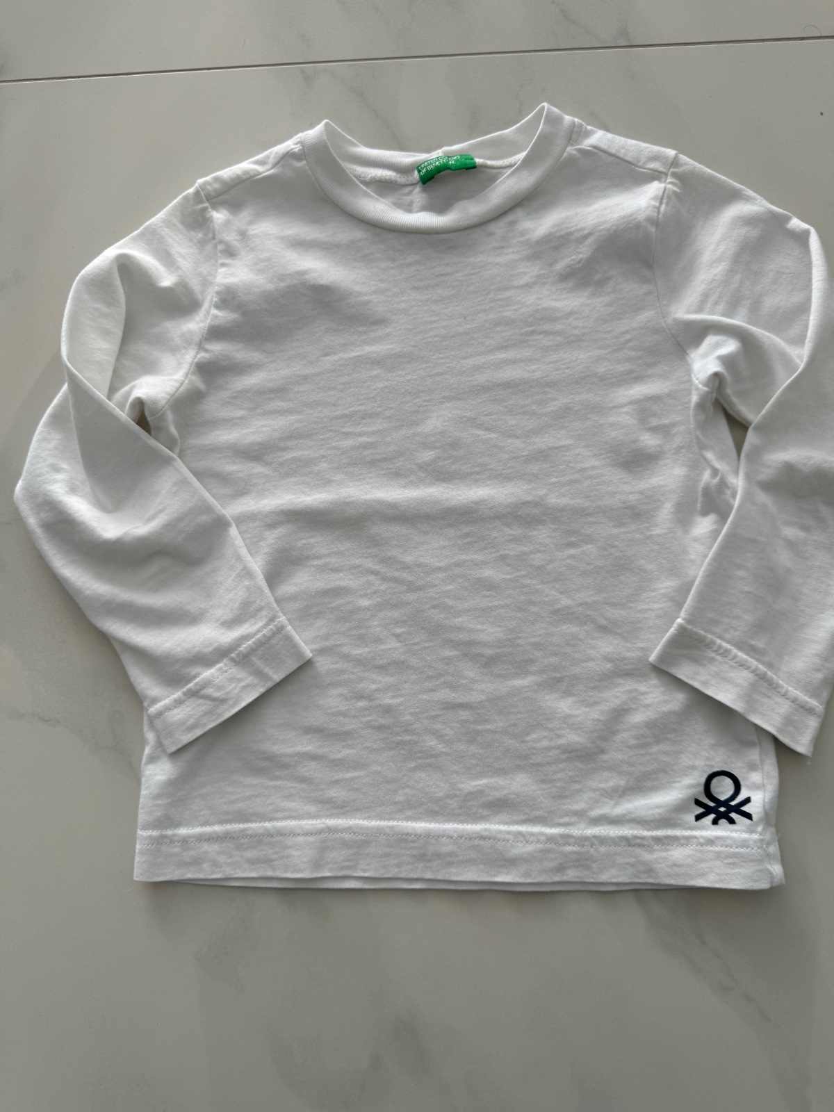 Predám biele tričko s dlhým rukávov značky Benetton vo veľkosti 3-4 roky. Nosené synčekom. Bez poškodenia.