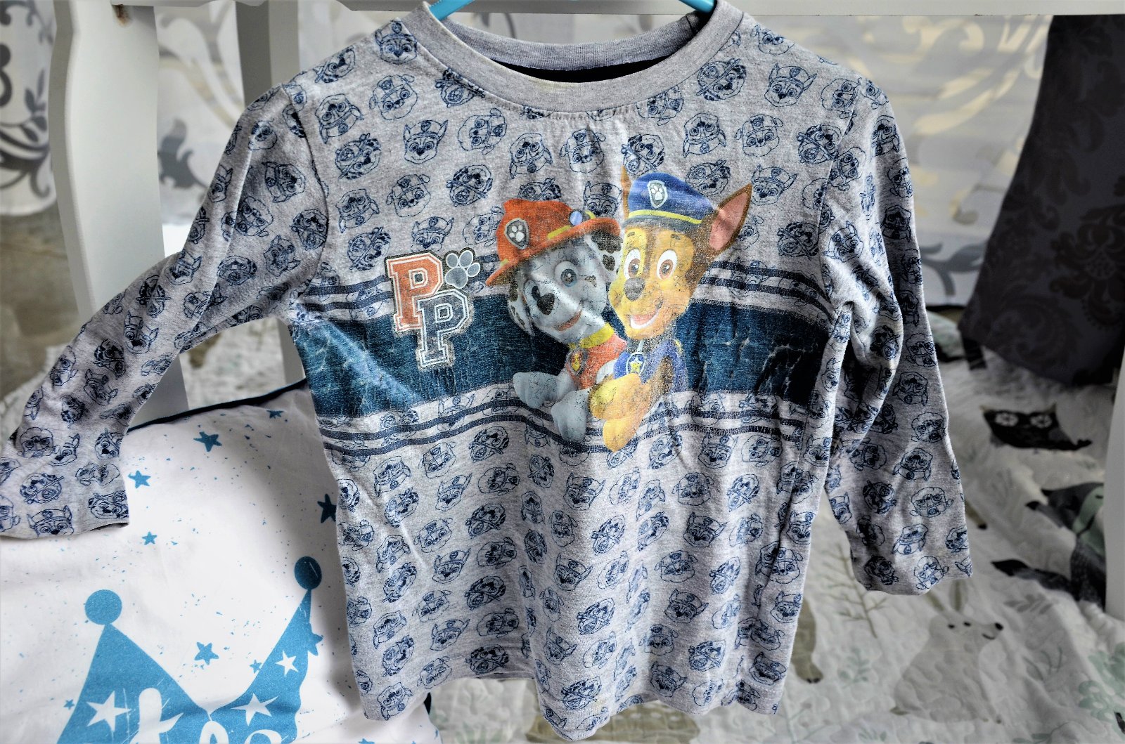 nevymieňam!!nosené,pre nenáročnú maminu,dĺžka 40cm,šírka 2x 30cm,rukáv od ramena 31cm,má vyblednutú potlač a fľak na rukáviku-viď foto,možno pôjde dole..neskúšala som..kuk aj na iné moje inzeráty