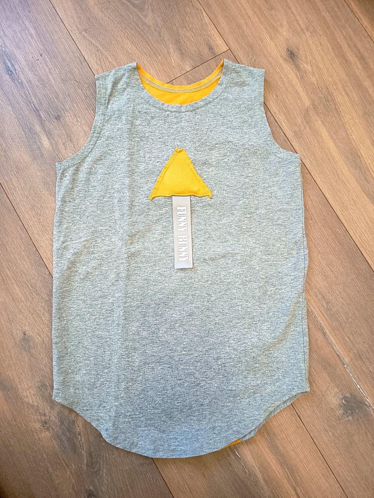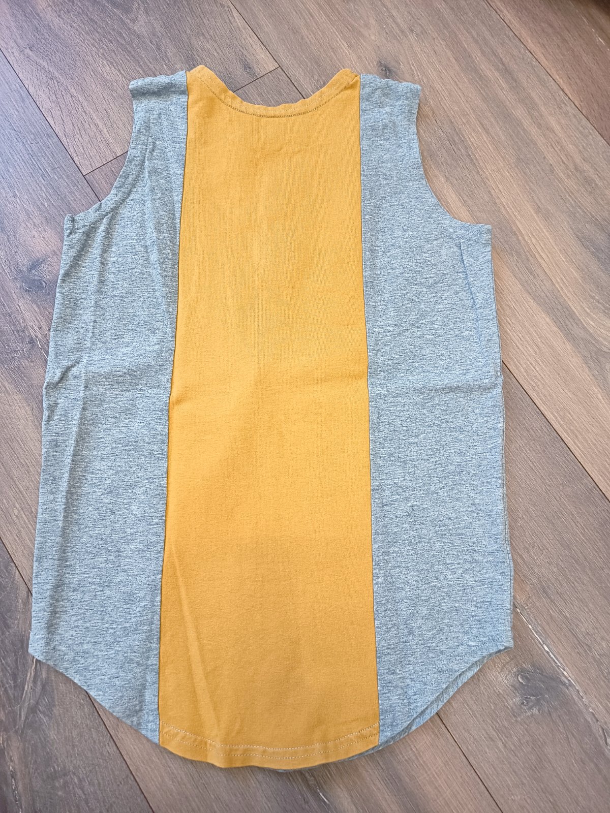 Krásne kvalitné tielko/tričko bez rukávov slovenskej značky Funny Bunny. Syn nosil snáď 3 roky keďže je to predĺžený strih. Veľkosť bola písaná 104/110 ale syn nosil do 134. Stav pekný noseny bez poškodení. Pískatko funkčné. Dĺžka or ramien po to najdlhsie miesto vpredu je 52 cm,šírka 34 cm.