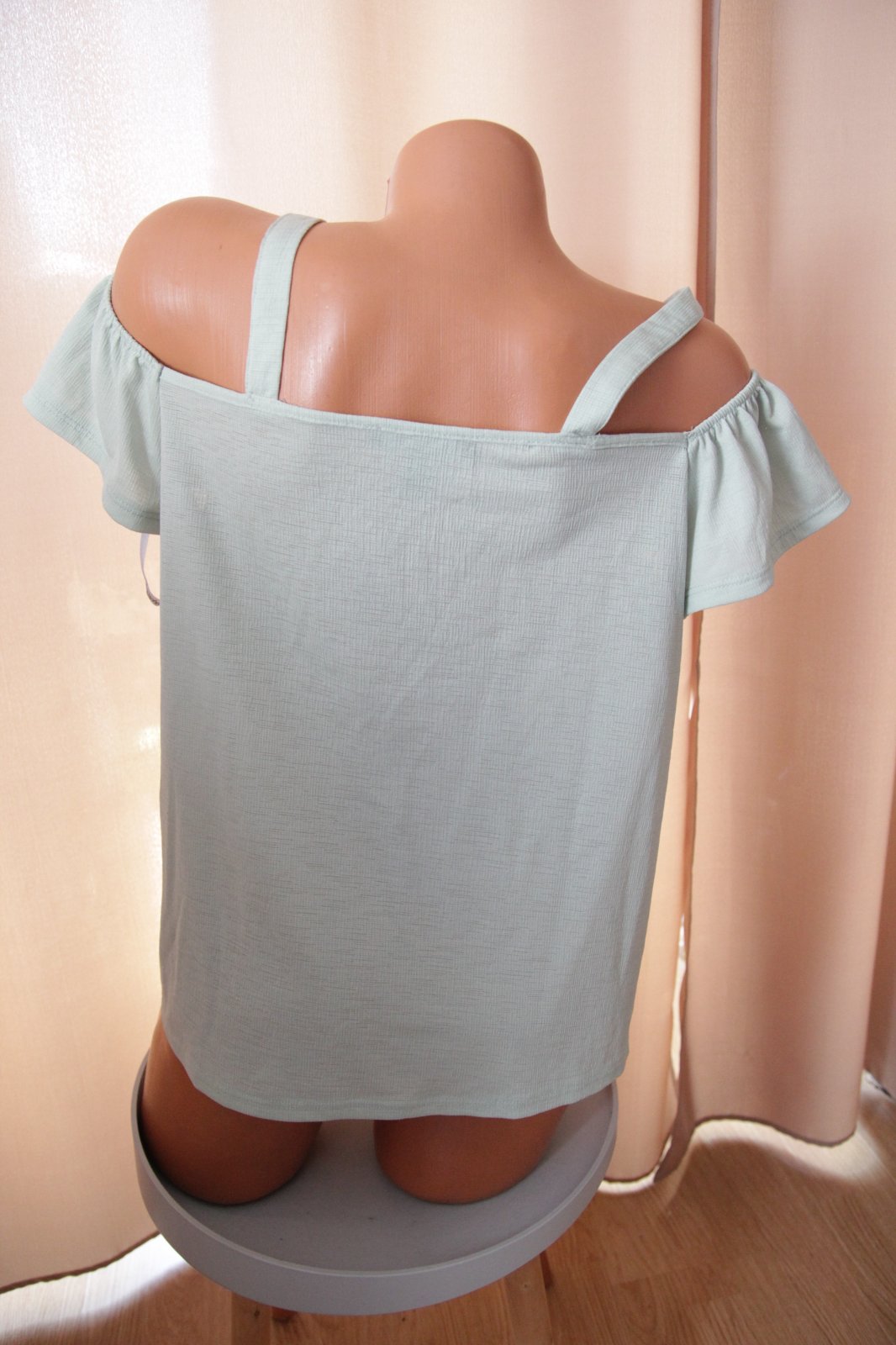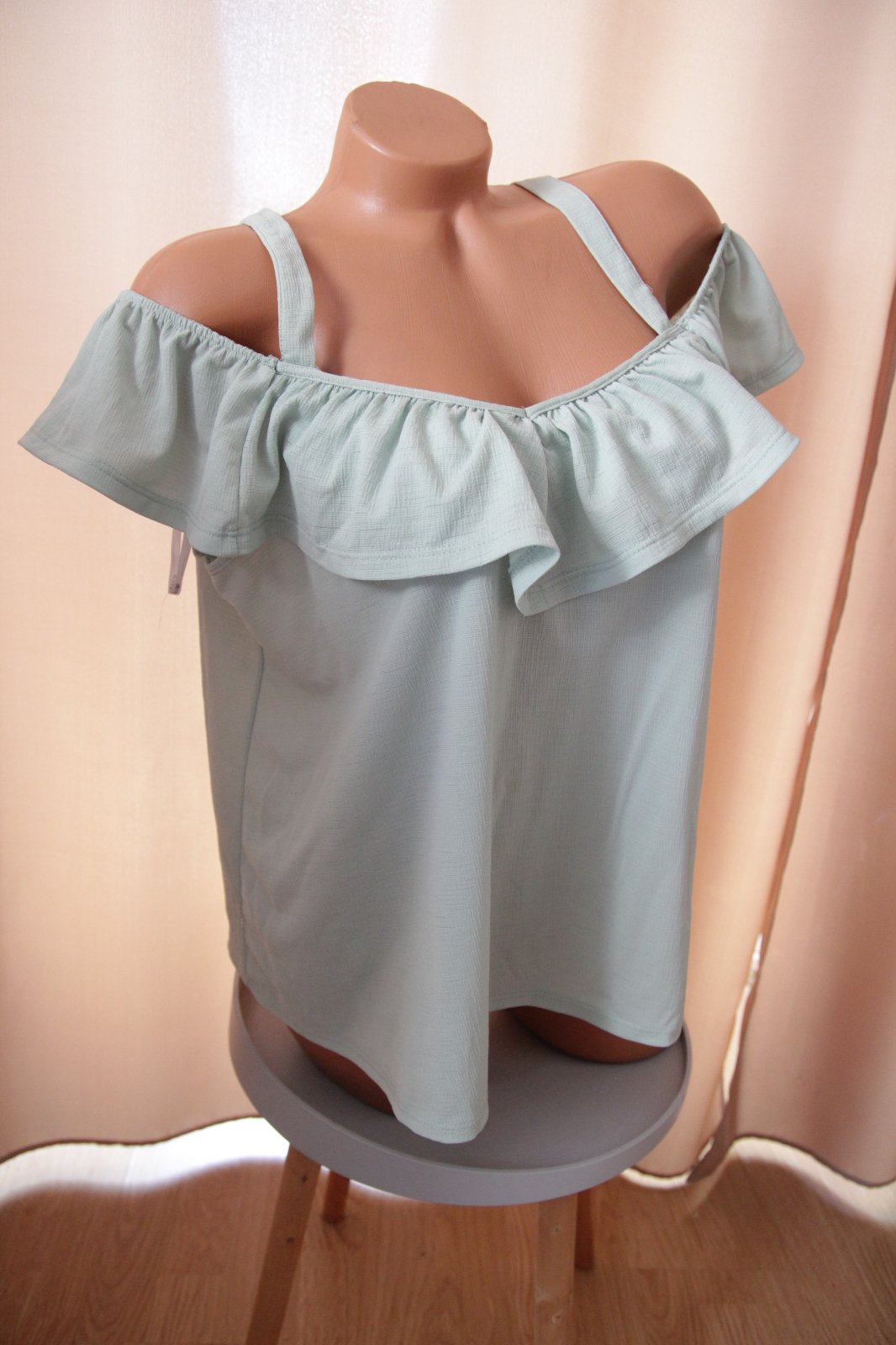Bledo zelený top s odhalenými ramenami, veľkosť XXL.