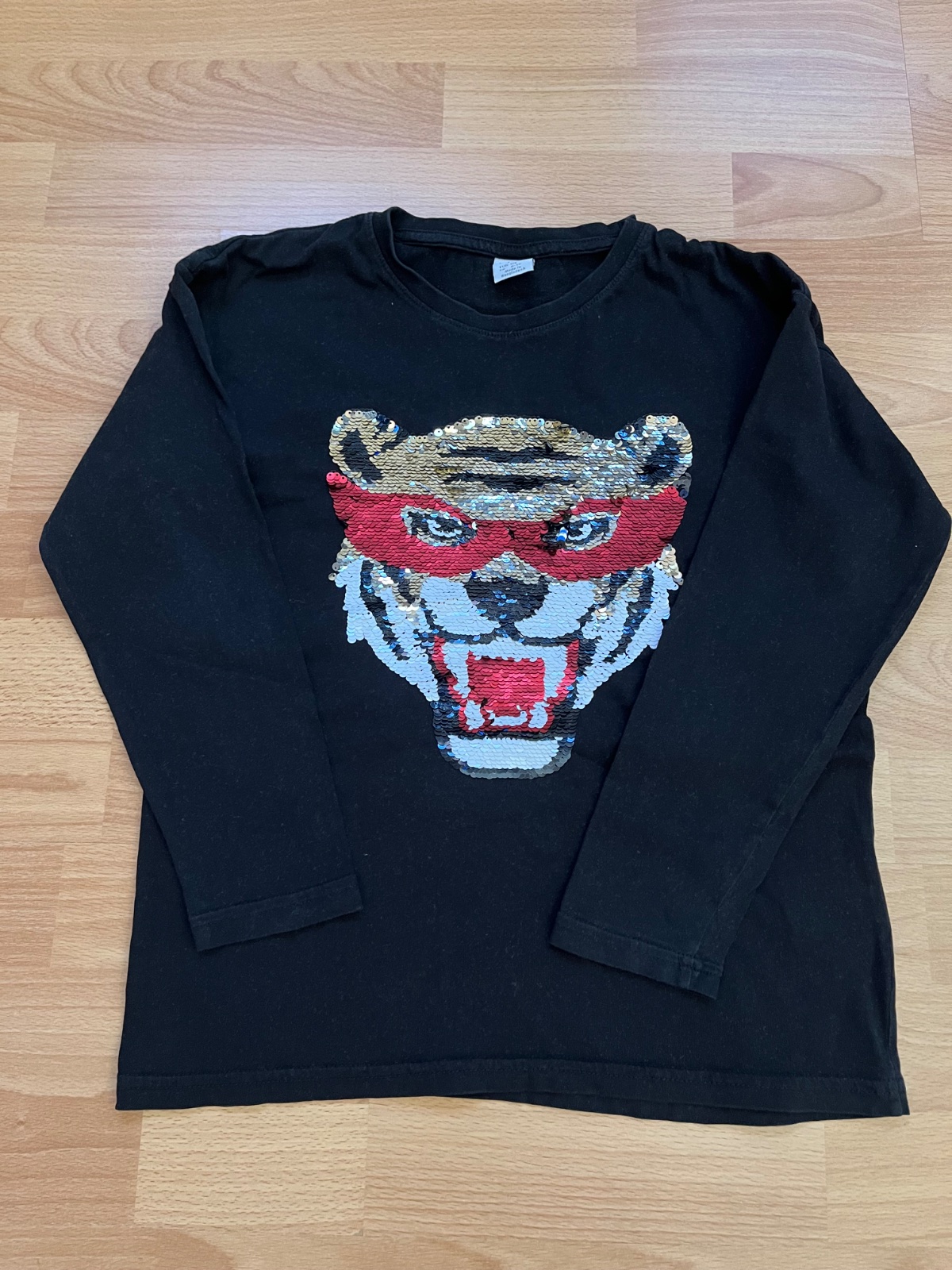 Melírované tričko s dlhým rukávom. Na bielych pruhoch na rukáve sa mierne potlač láme (viď foto), inak bez poškodení - bez dierok, žmoliek, fľakov. šírka: 2 x 40 cm dĺžka: 56 cm rukáv od krku: 59 cm