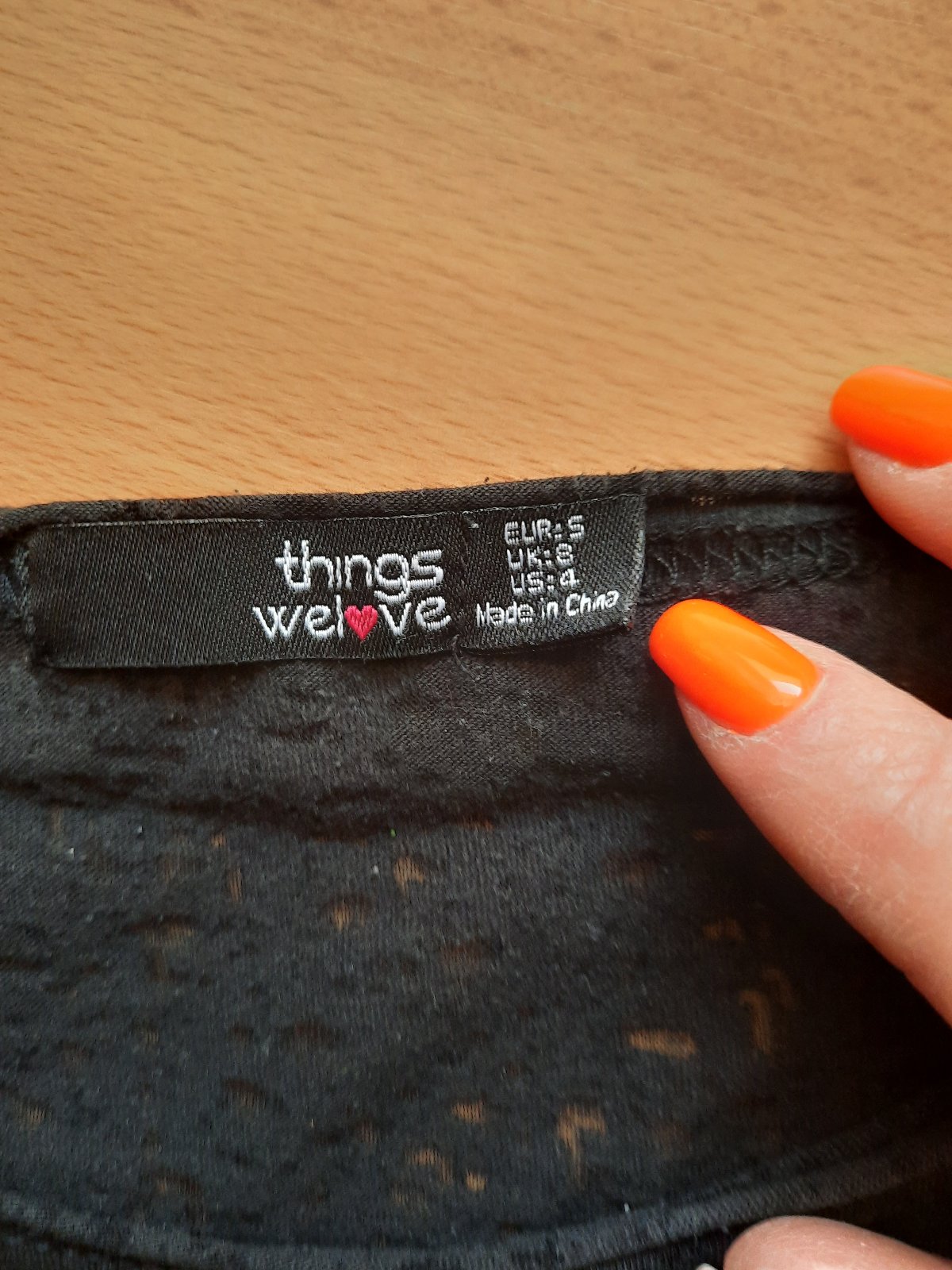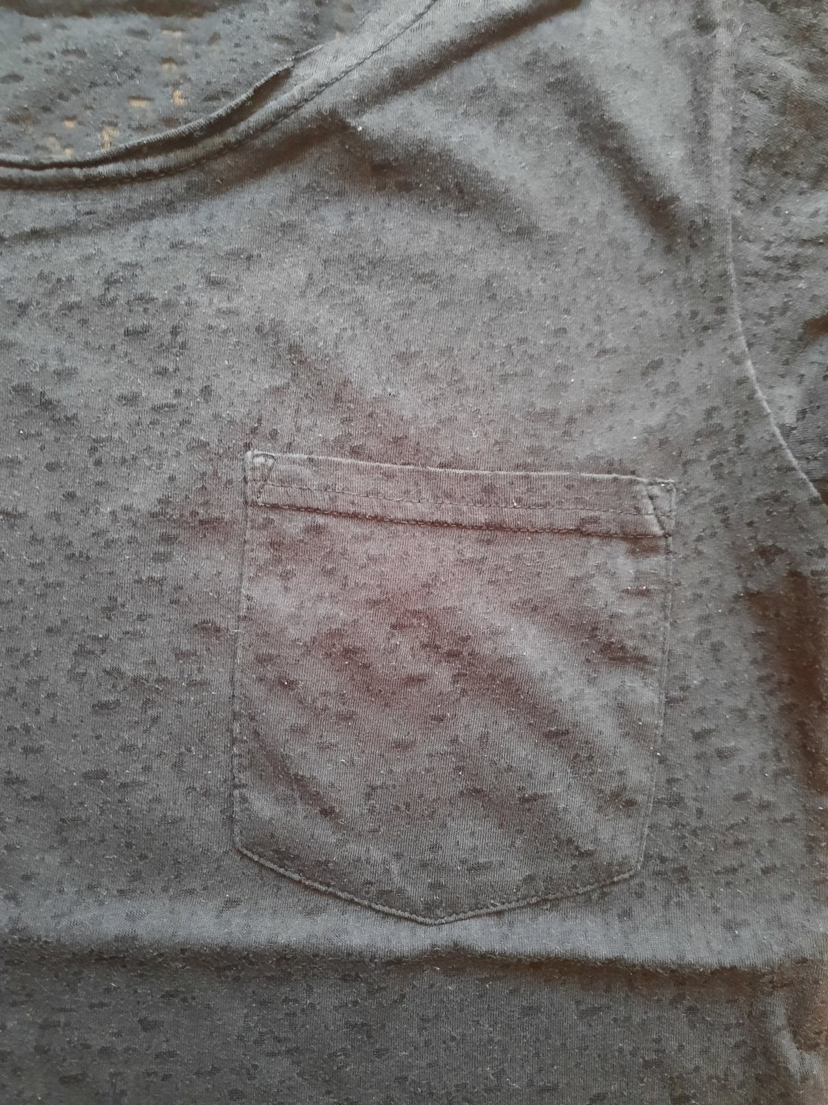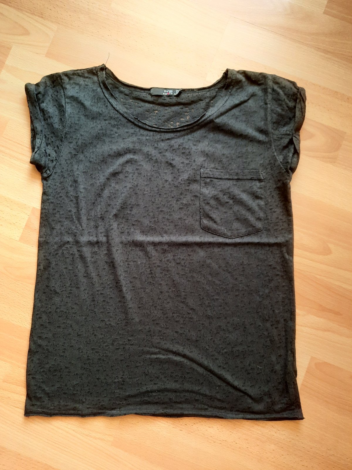 Predám krásne čierne bavlnené tričko v super stave, na prednej strane s malým vačkom. Látka má veľmi zaujímavý vzor. Farba je pekná sýta, nevyblednutá.