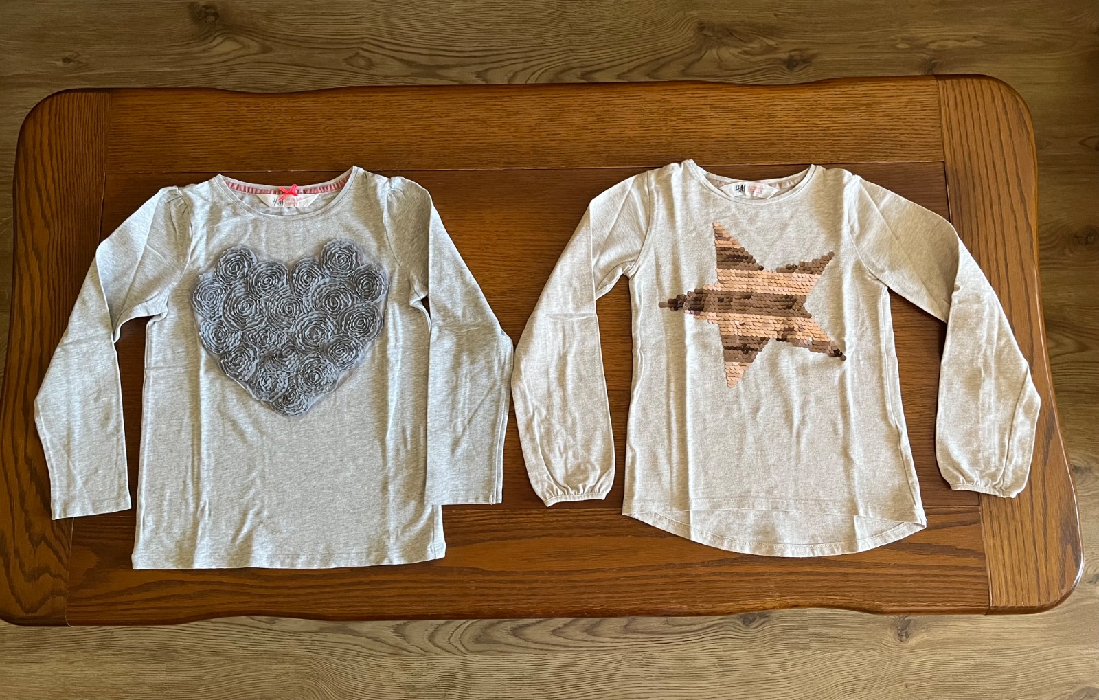 Jednofarebné tričká vpredu s veľkými 3D aplikáciami hviezdy z flitrov a srdiečka z ružičiek.