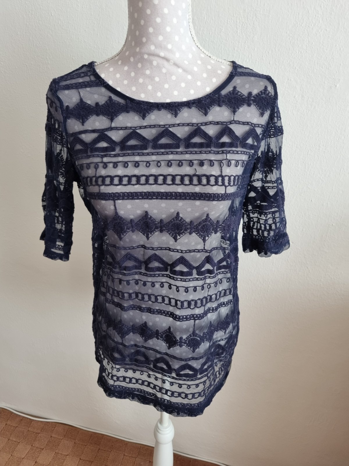 Modrý čipkový top 38