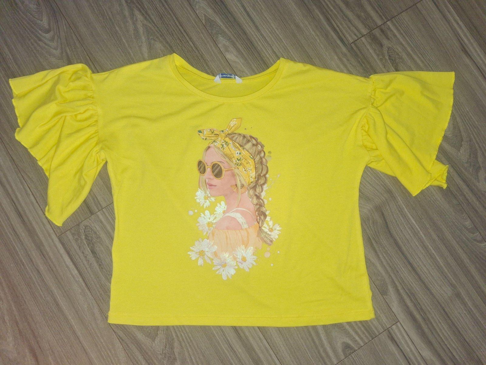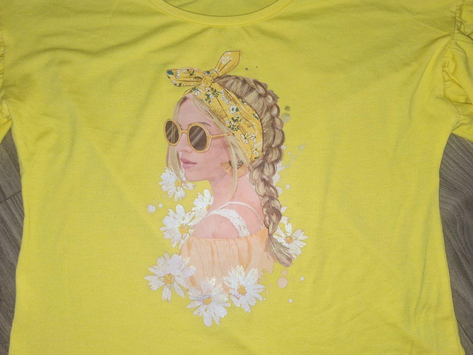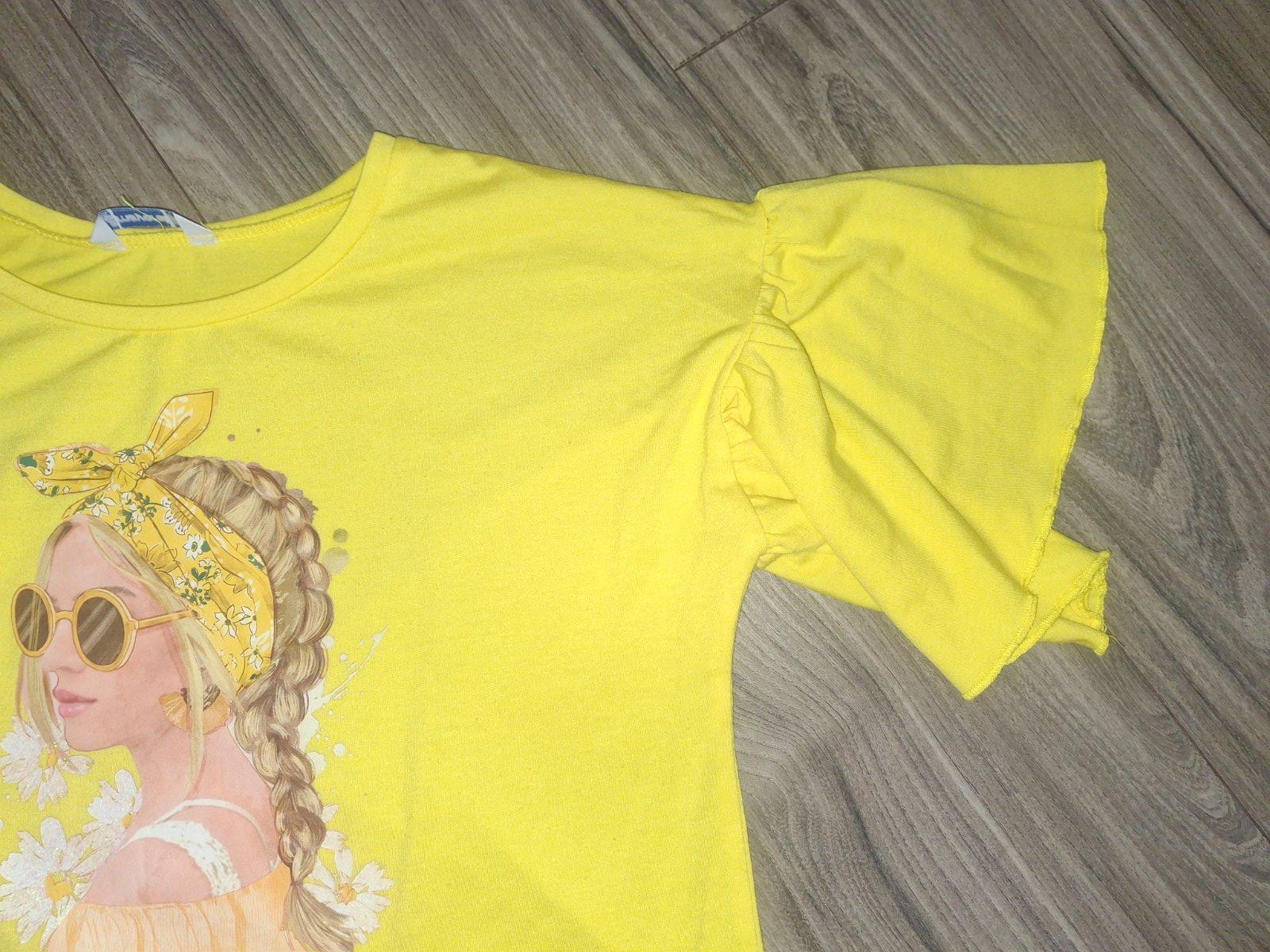 Veselé žiarivé letné tričko, so širokým krátkym rukávom. Bezchybná potlač. Stačí pridať napr. rifľovú sukničku.
