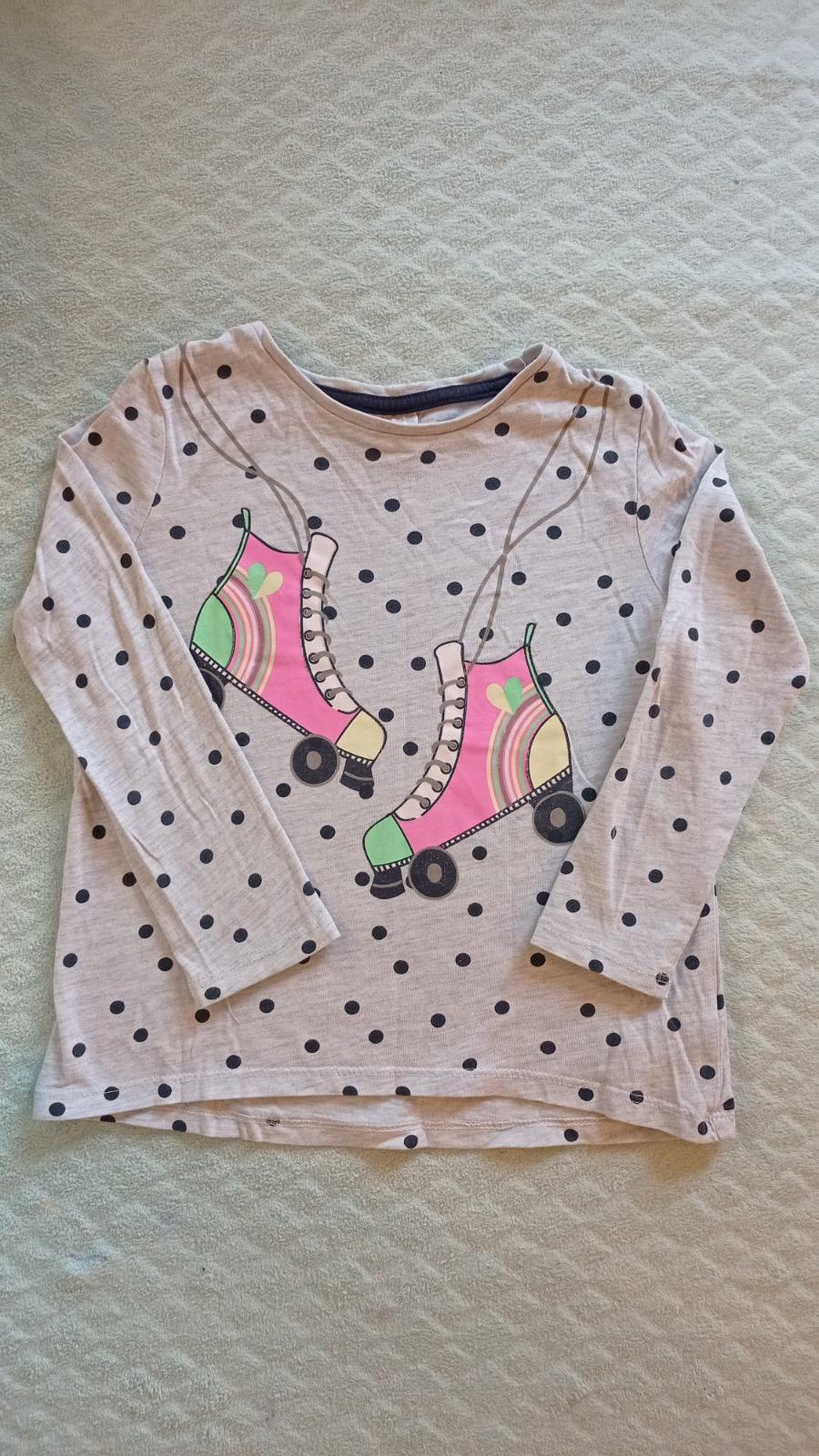 Predám pekné tričko s dlhým rukávom. Veľkosť 110. Bežné známky nosenia. Dĺžka 37cm, šírka pod pazuchami 31cm , dĺžka rukáva od ramena 36cm .