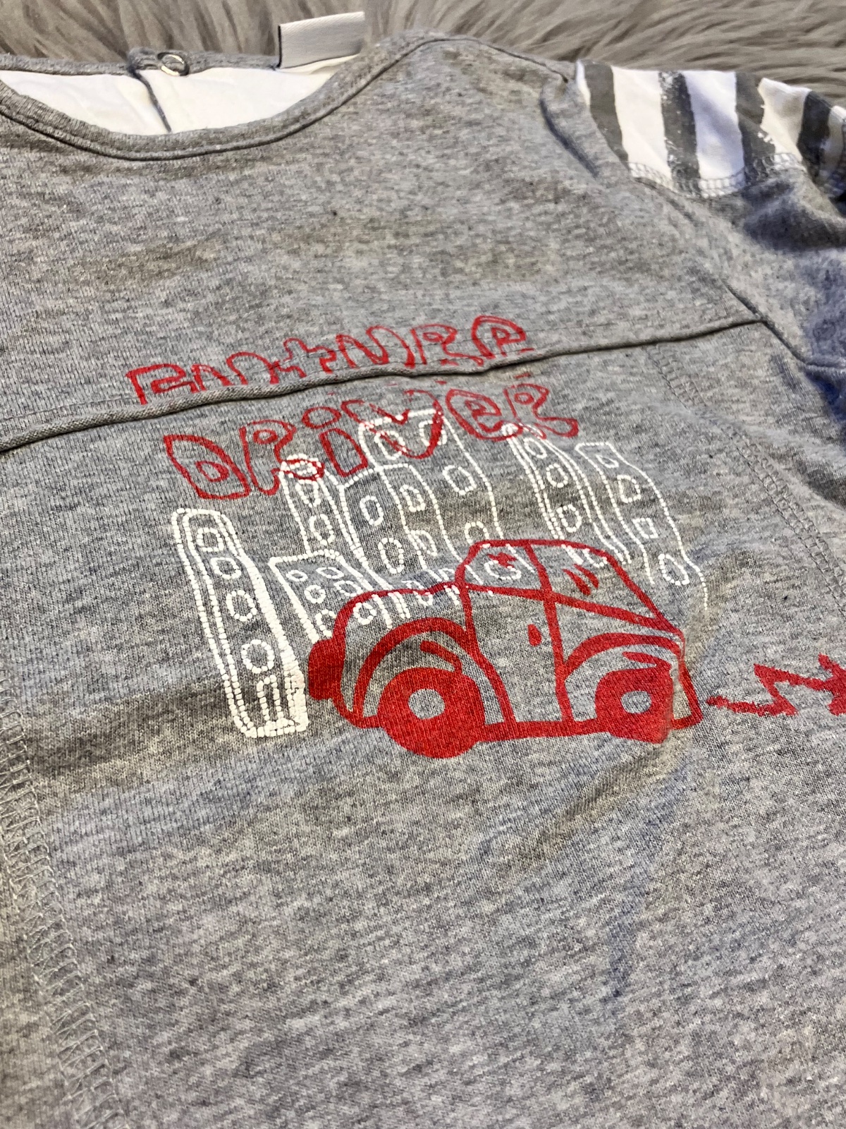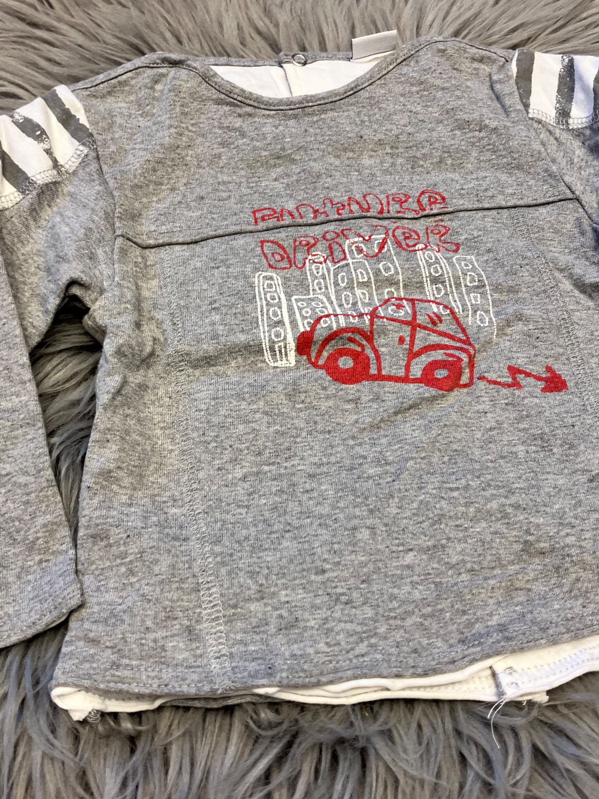 Chlapčenské tričko s dlhým rukávom, sivo-bielo-červené, elastické, hrubšie, zapínanie vzadu na cvoky, materiál 100%bavlna.