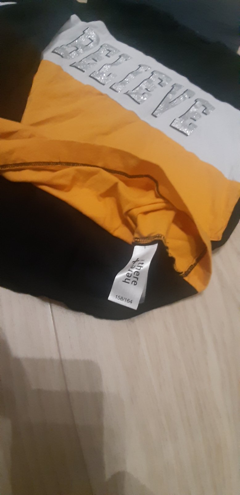 Predám dievčenské tričko s dl.rukávom, farba tmavo modrá s peknou potlačou, strihovo je kratšie, na boku rozparky.bez poškodenia, miery: dĺžka 48cm., rukáv od krku 57cm., od pleca 48cm.,veľ.152/158...