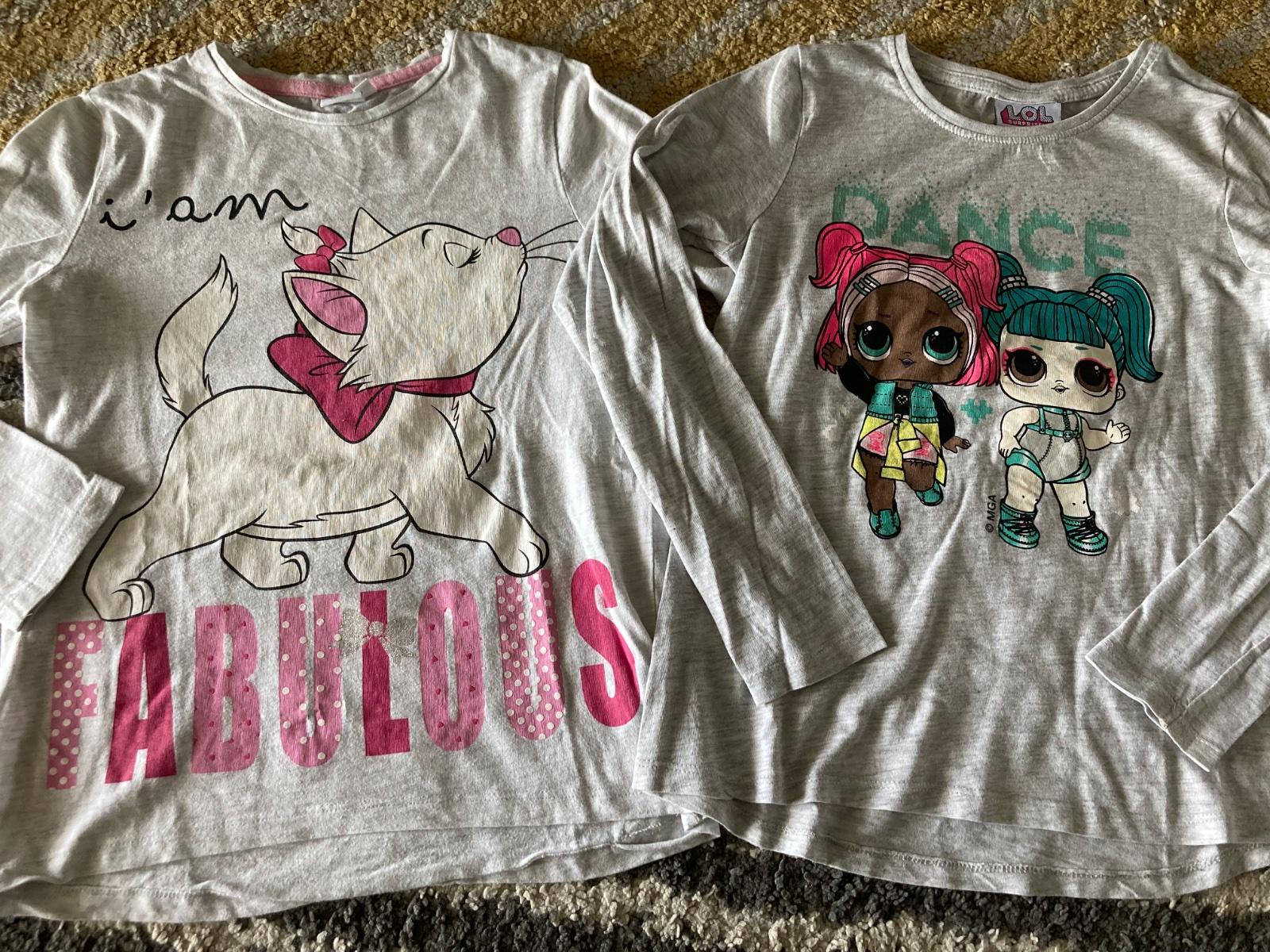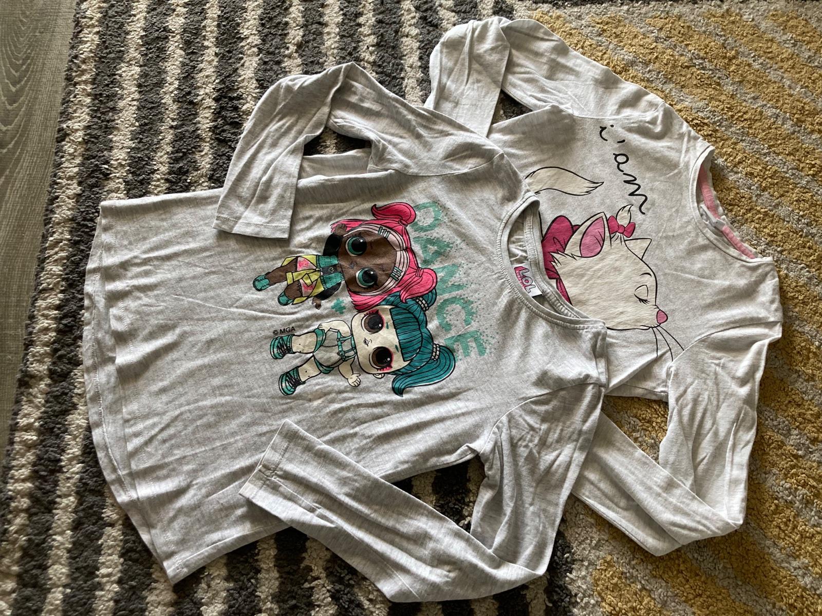 veľmi pekný stav, krásne, bez poškodení, kvalitné, sýta farba, bez žmolkov, bez fľakov, miláčikovia značka Disney-obrázok trošku bledší, Lol značka Lol, Disney veľkosť 128, Lol 134, ale sú takmer rovnaké