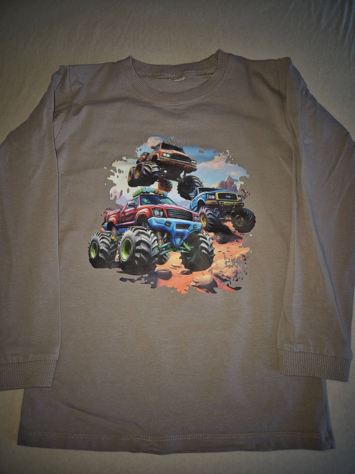 Krasne svetlohnede tricko s dlhym rukavom, s autami, bez poskodeni, malo nosene.