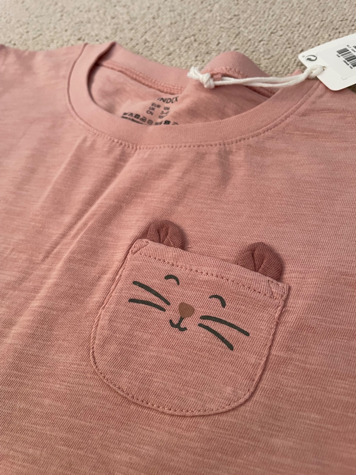 Tričko so srdiečkami, málo nosené, napriek tomu 3 bodky asi od kečupu, snažila som sa odfotiť.