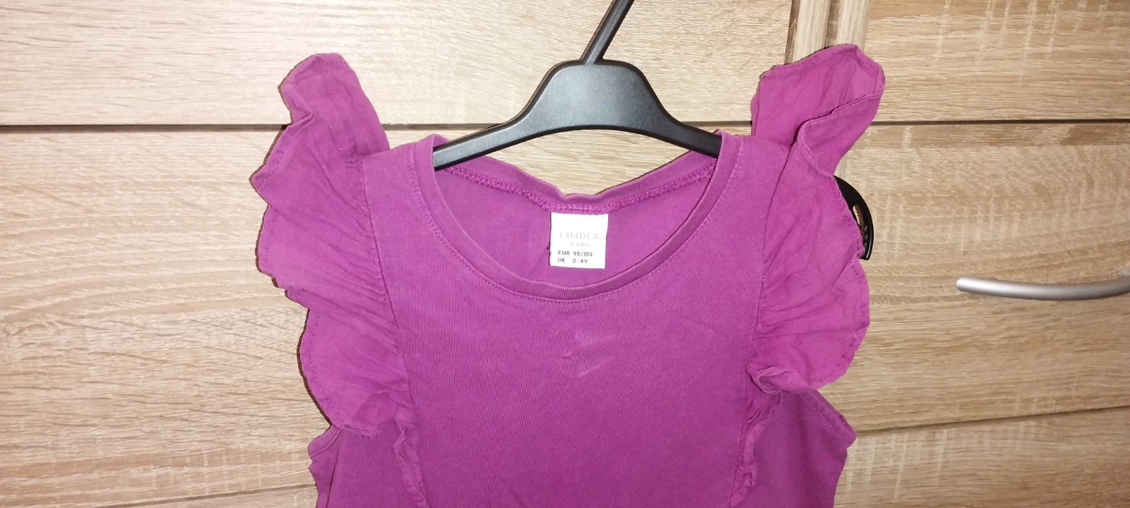 2ks nosené tričká v. 104, z Lindex. Celková dlžka40cm , popod pazuchy ľx34cm, vonk. rukáv od pleca dole 36cm, vnút. rukáv 29cm. Cena za kus 1euro + pošta