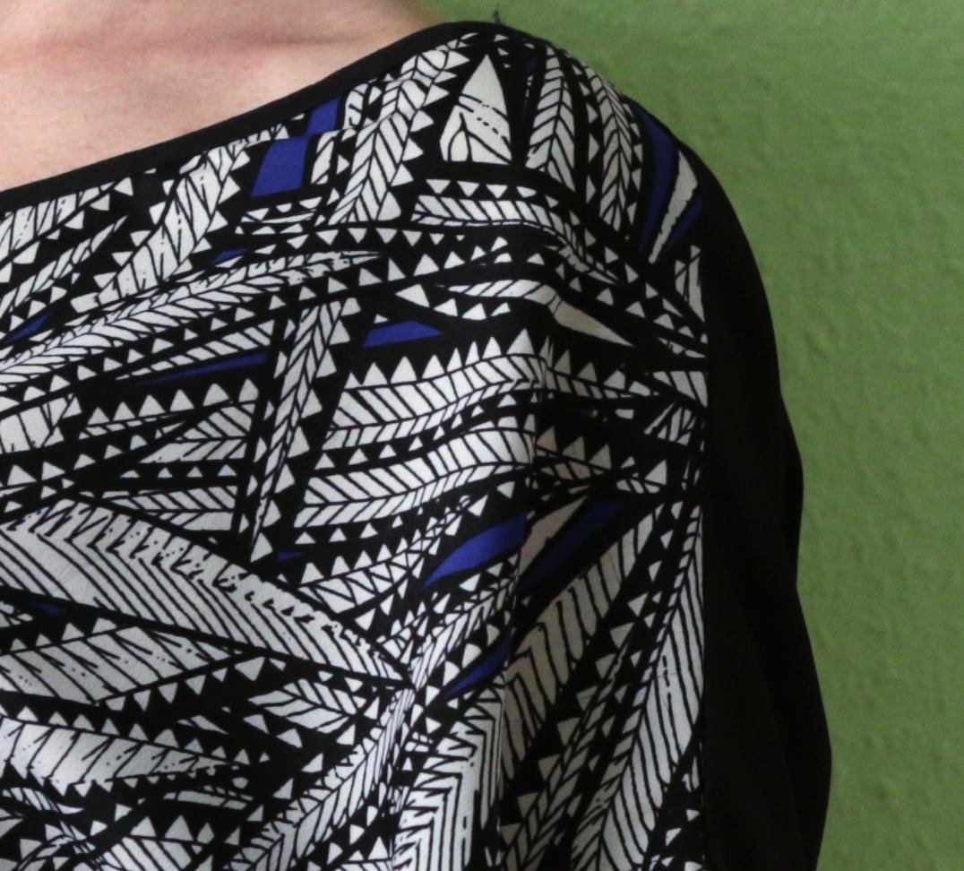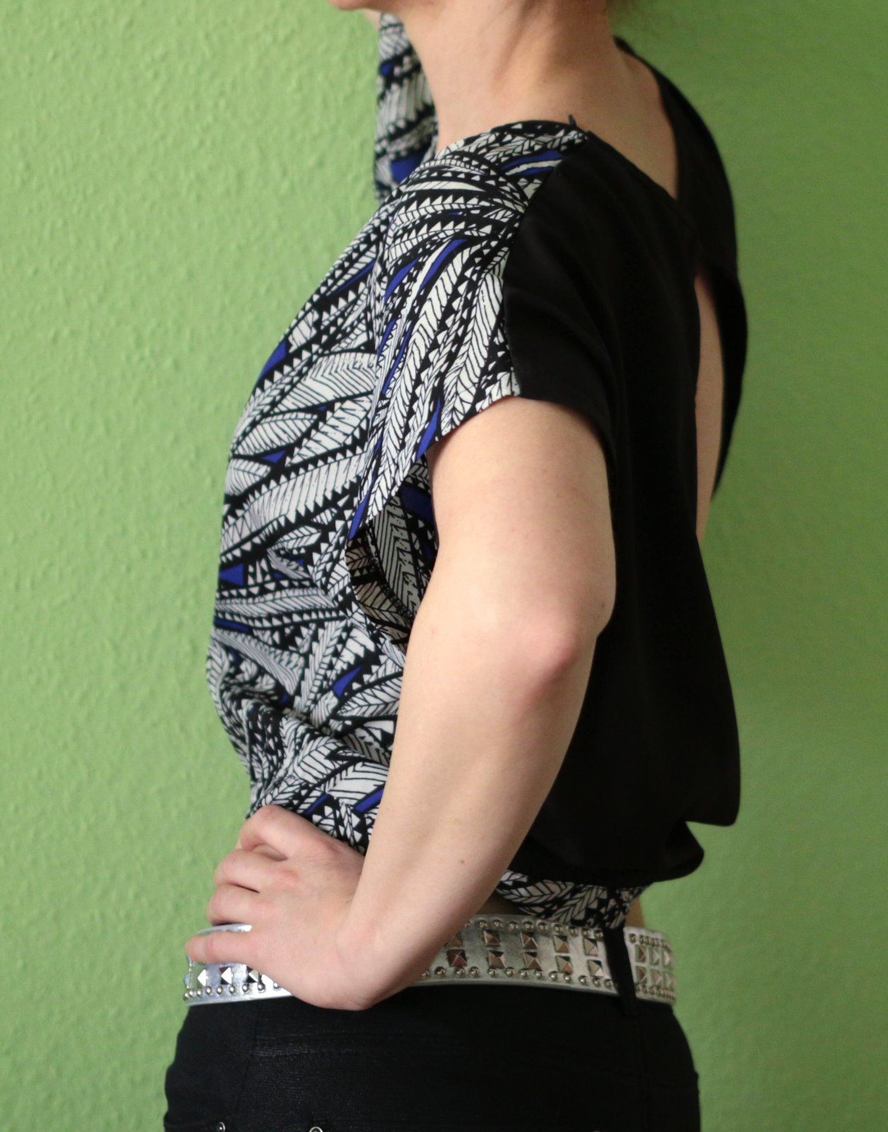 Ľahký vzdušný letný top do pása, široká voľná silueta, vzadu priestrih od výstrihu až po pás. Chrbát čierny, predok má čiernobiely vzor s výraznými modrými akcentami. Materiál je akoby šatkový, pripomína hodváb. Je to ale syntetika, 100% polyester. Veľkosť UK 18, t.j. 46 ale plus mínus, top je voľný, veľkosť univerzálna. Nový, nenosený. Odoslanie poštou alebo Packetou, cenu za odoslanie nepíšem do správy.