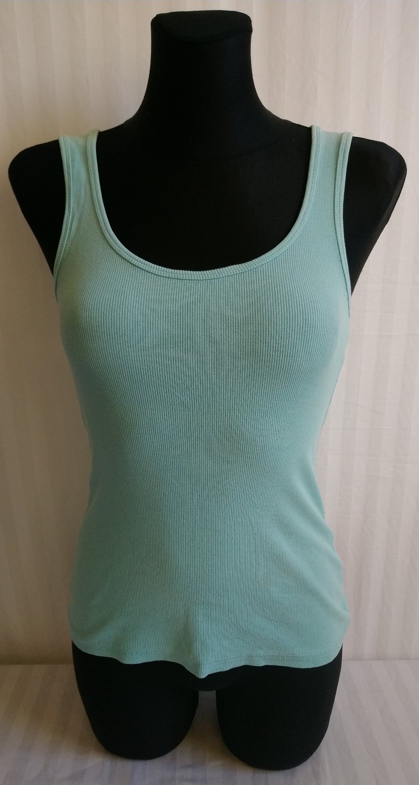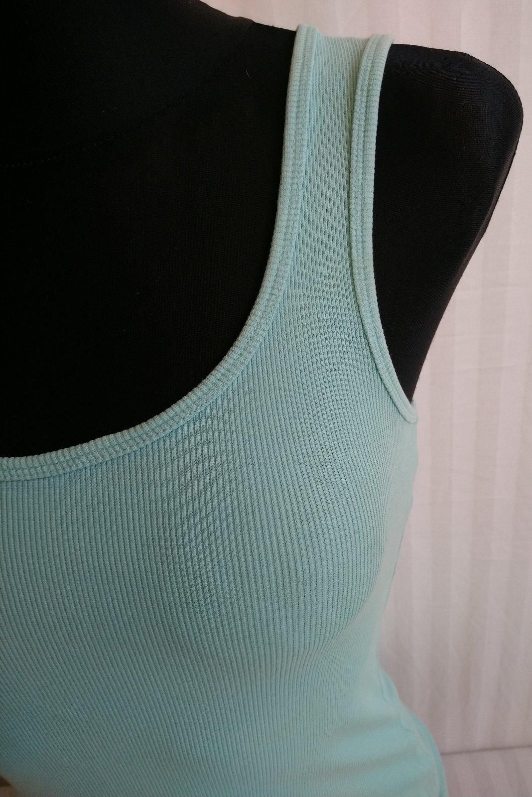 dámsky elastický svetlo modrý top, zvisle vrúbkovaný,
