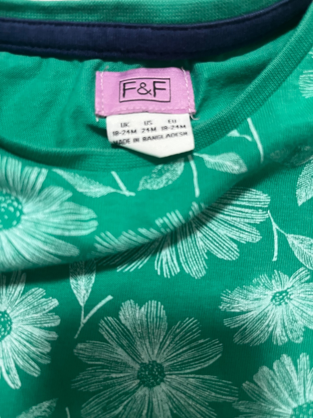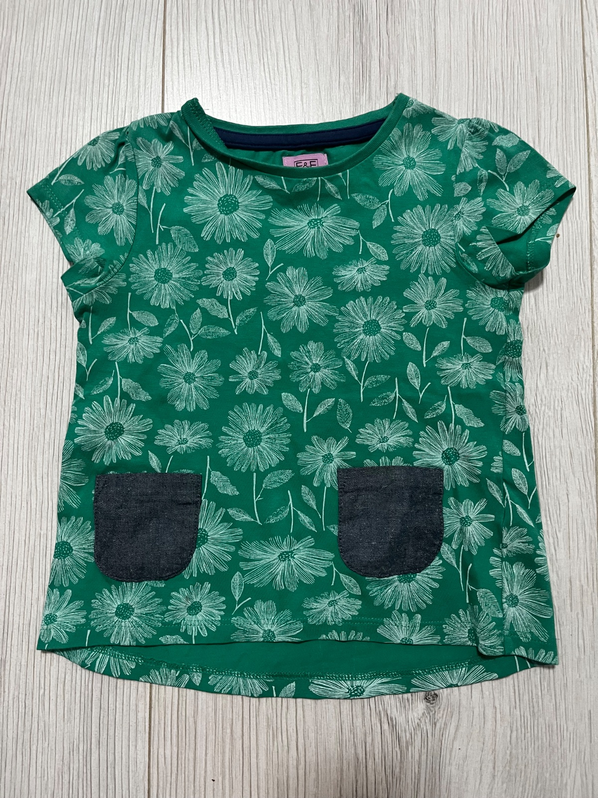 Predám zelene kvietkovane kratkorukavove tričko s vreckami. Značka F&F, veľkosť: 92 (18-24 mesiacov).