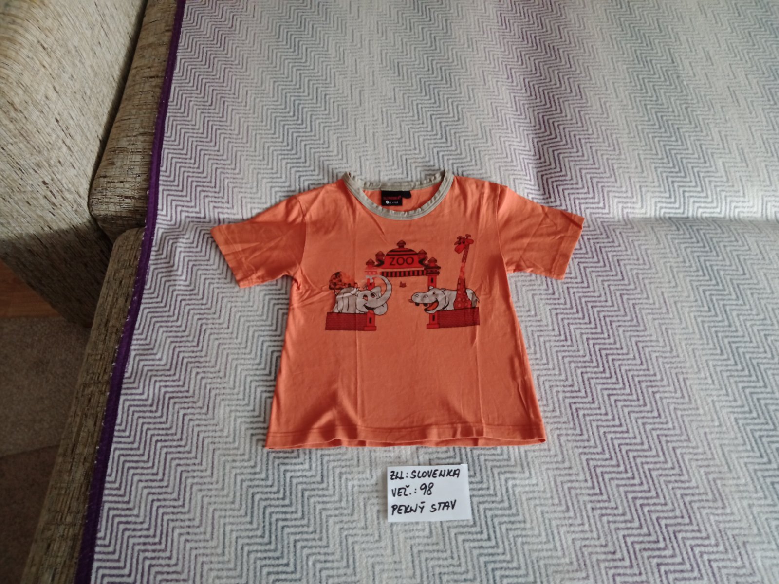 Tričko s krátkym rukávom zn.Slovenka veľ.98,v peknom stave.Farba je ako na fotke,opotrebenie je veľmi máličko vidno na potlaci.cena 1,80eur.