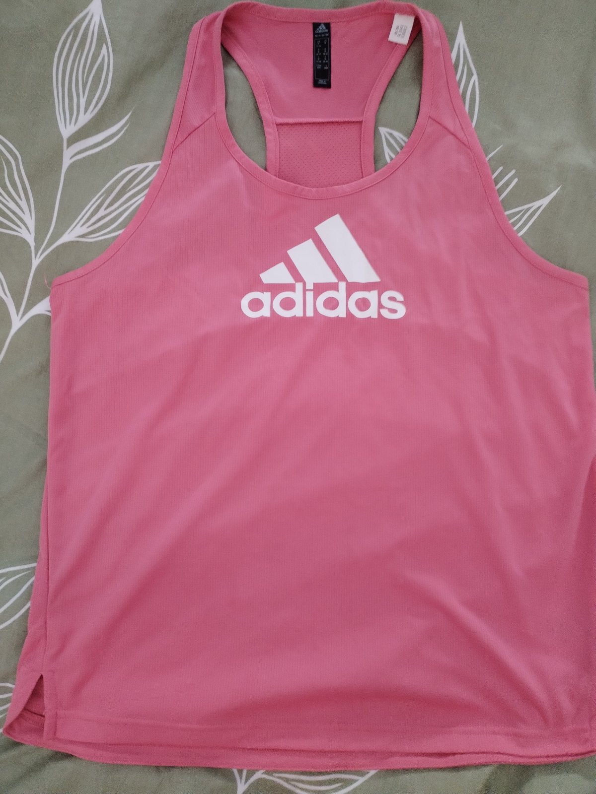 Adidas baby ružový top - tričko, ideálne na športové aktivity, vzadu mini bodka, pozri detail, inak perfektný stav bez poškodenia. Veľ. F 40, ale v pohode aj ako ľahké oversize M/38. Raz oblečené, ...