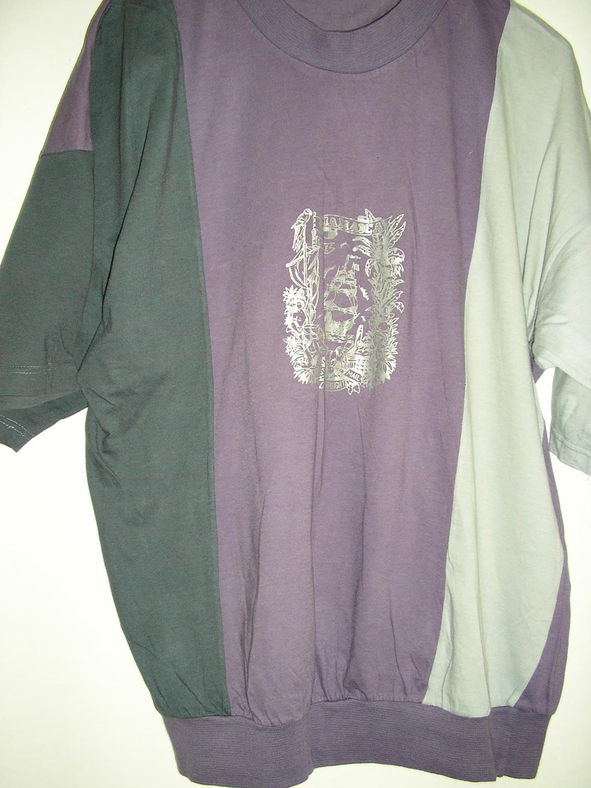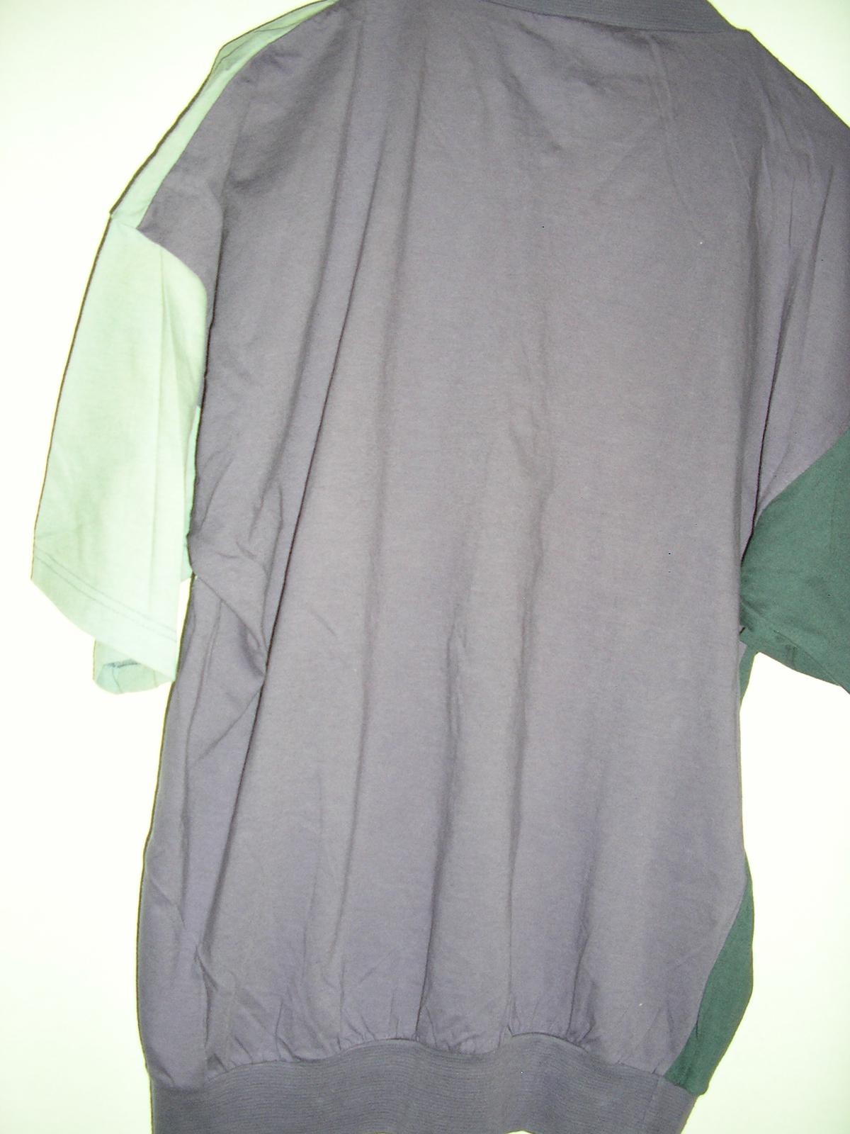 Farba: sivá, fialová, tm. modrá. Rukávy – krátke. Okrúhly výstrih. Pás – zakončený do pružného patentu. Svojim strihom je vhodné aj pre ženy aj muži.