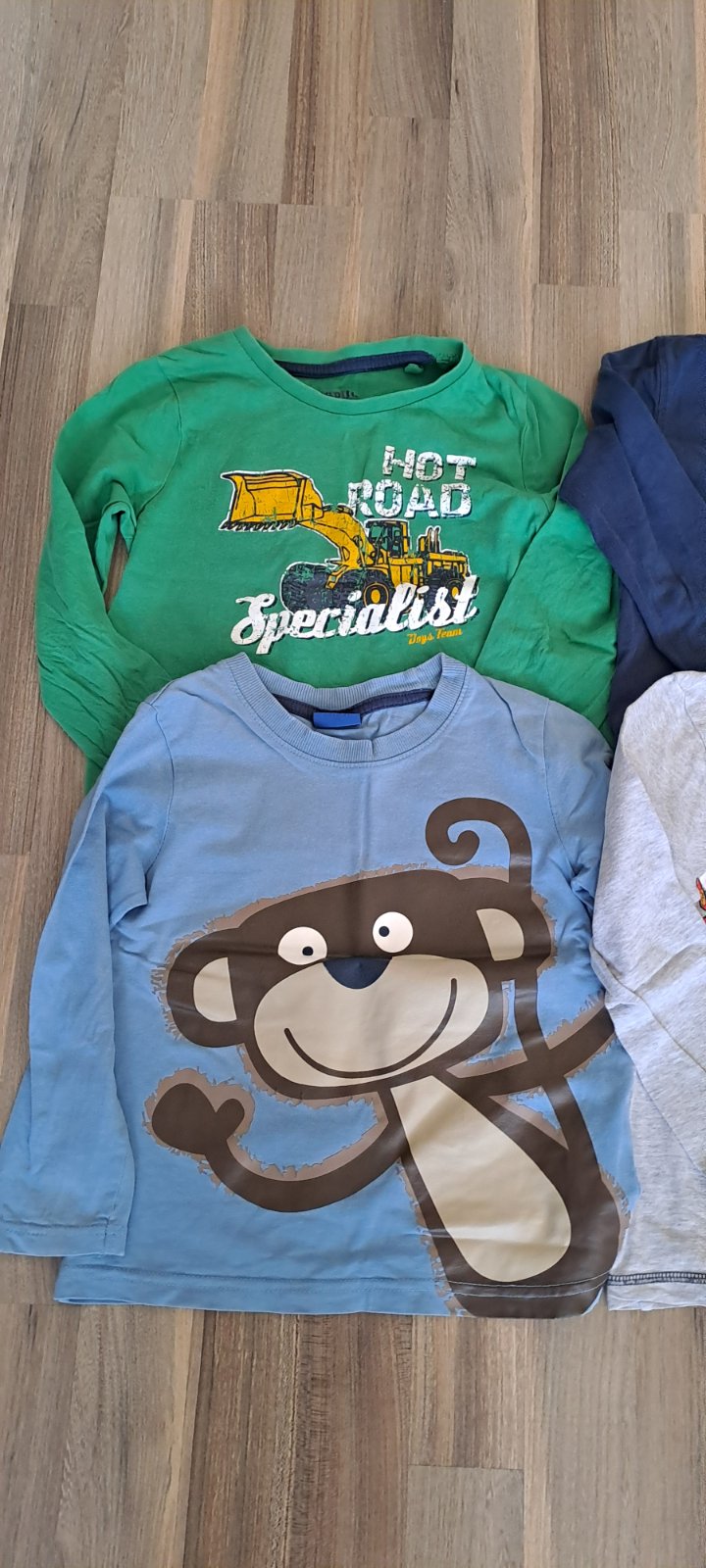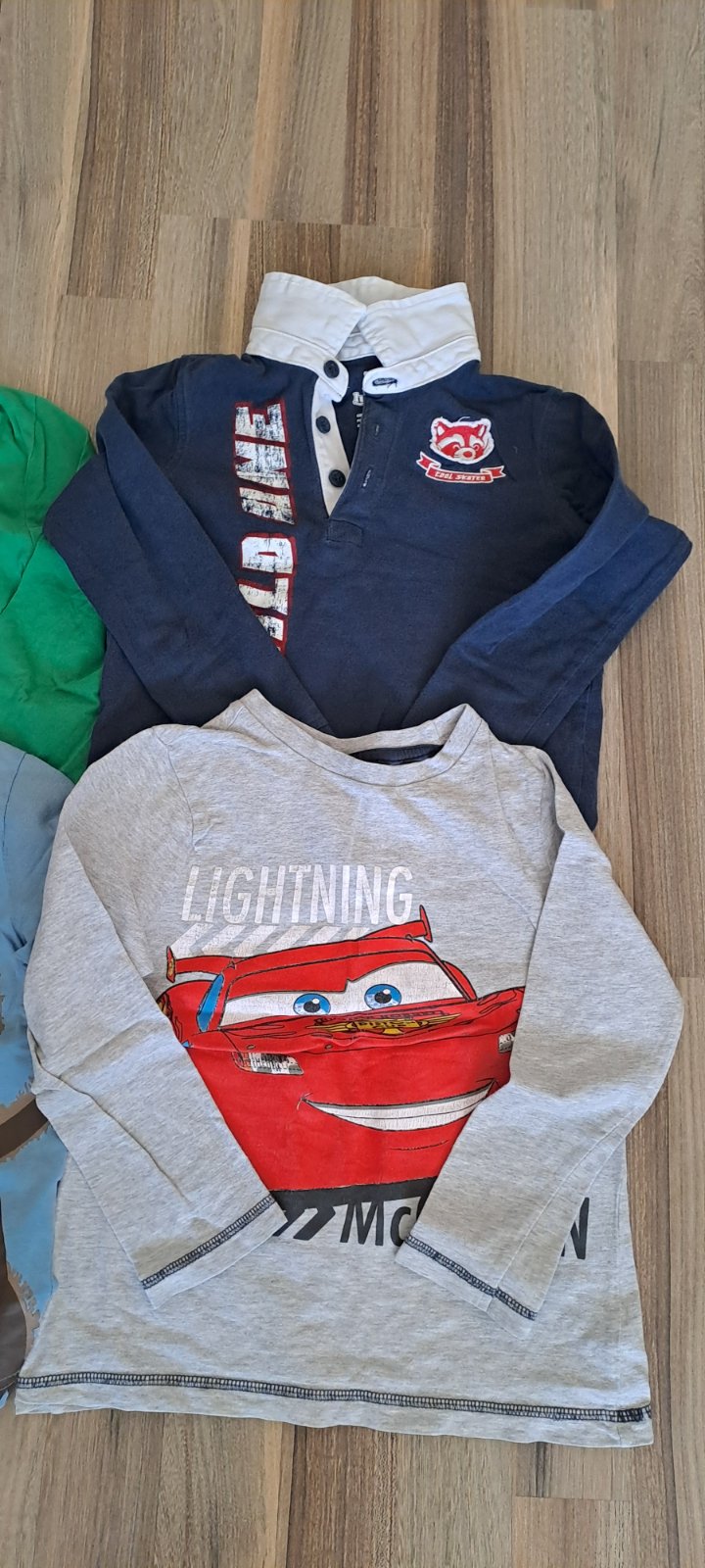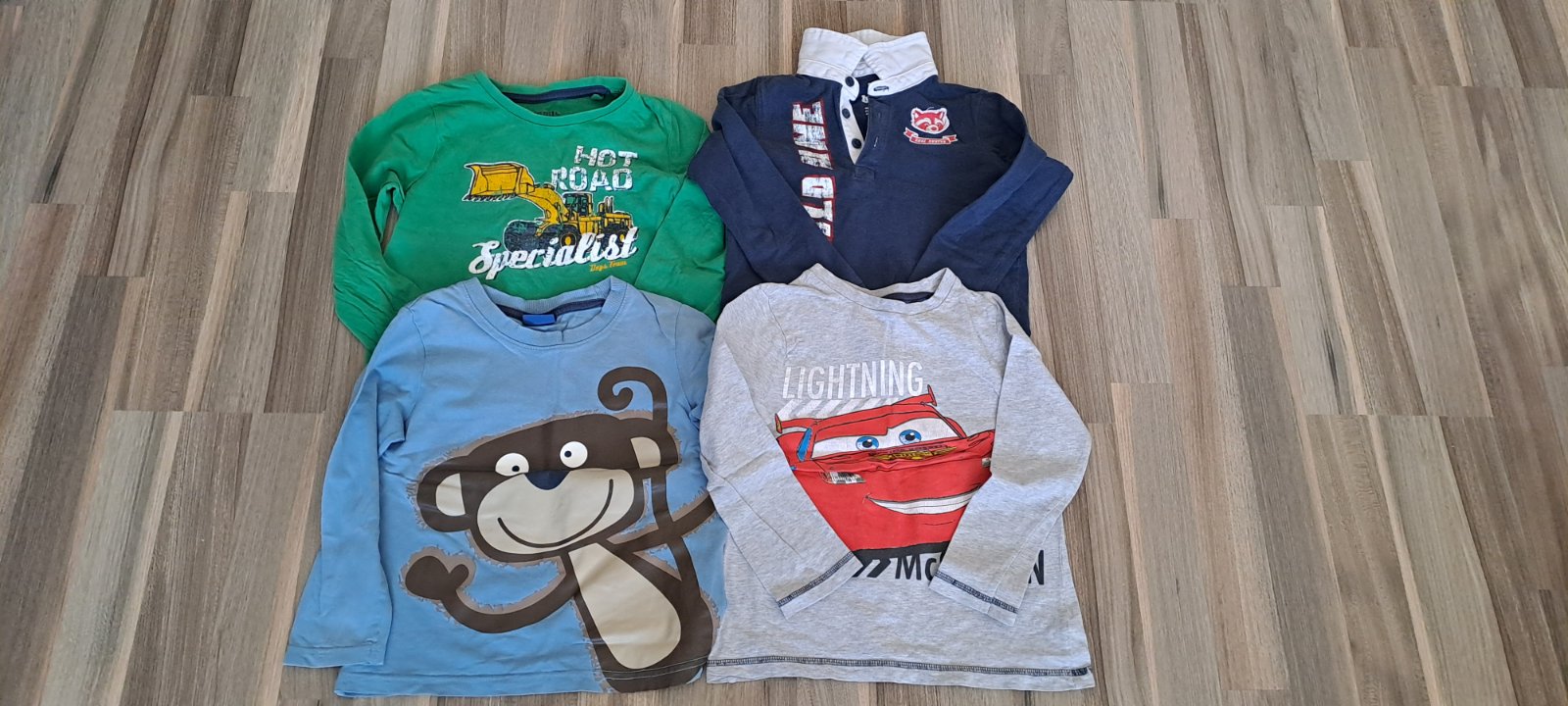 Ponúkam na predaj tričká– dlhý rukáv, farebné s rôznymi potlačami (McQueen, opica, traktor) (4 ks, veľkosť 110-116 cm, 4-6 rokov, značka: F&F a LUPILU). Nosené, skôr na doma. Cena 1€/4 ks.
