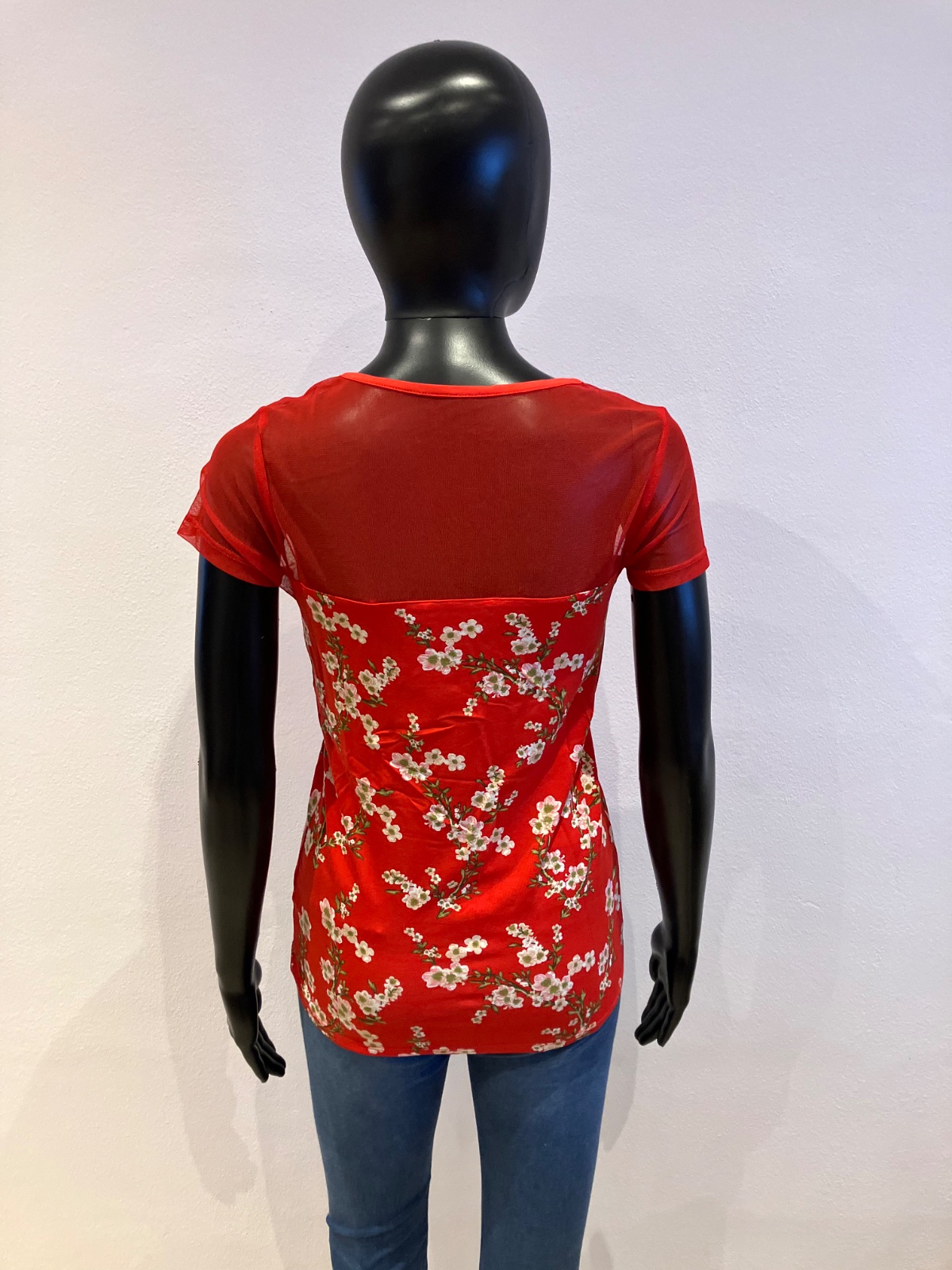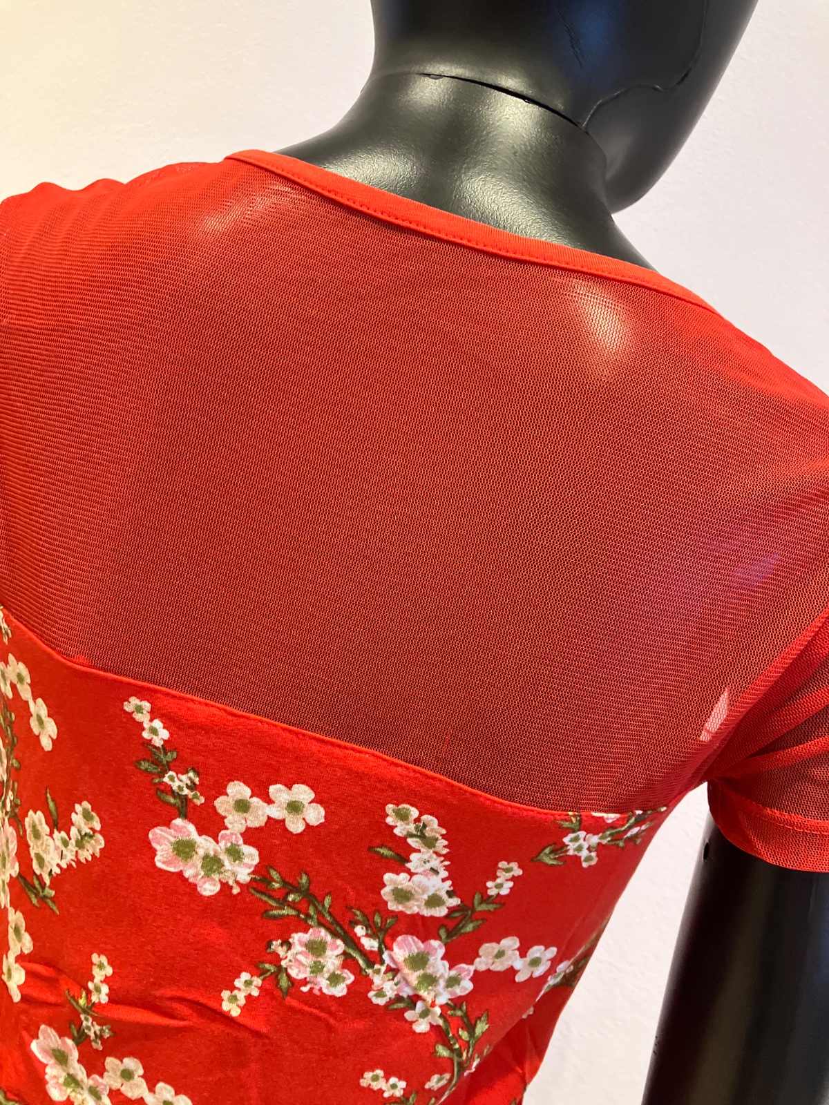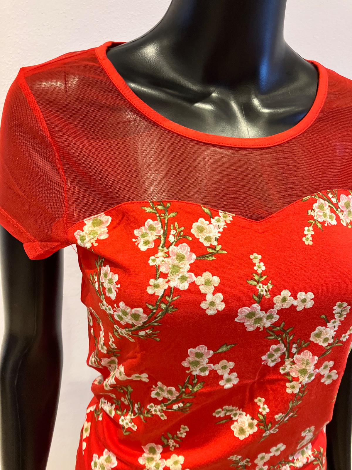 Dámske tričko s krátkym rukávom a tylom, elastické, materiál: 95%viskóza,5%elastan.