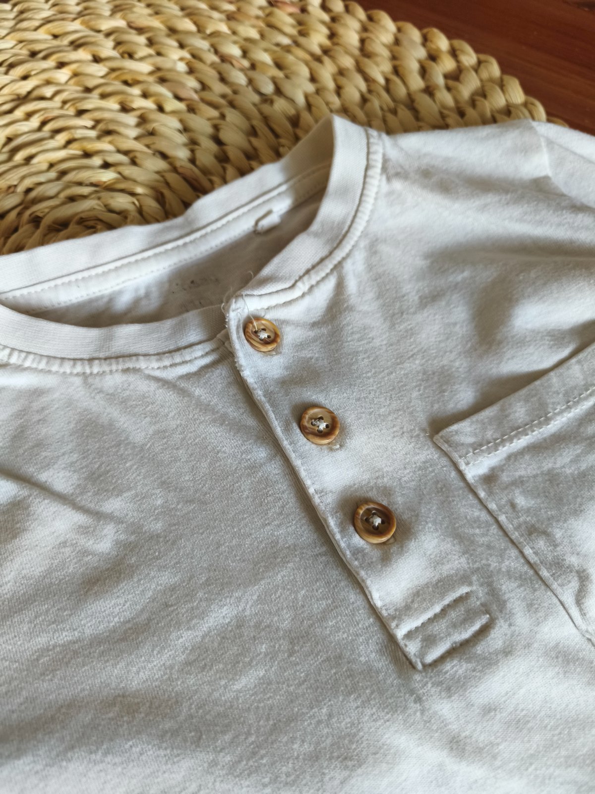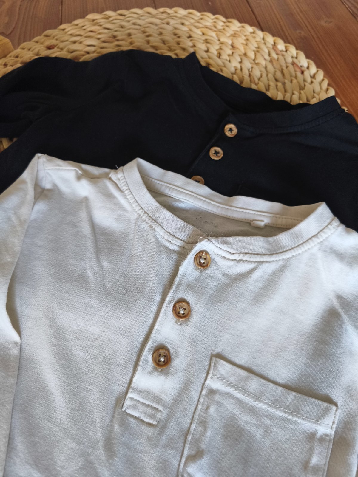 veľ. 104 Nové 2 kusy bavlnené vrúbkobané trička s drevenými gombíkmi, béžové a čierne ,sú jemnulinké, 100 % bavlnka, je to pružná bavlnka, vyzerajú veľmi pekne .....s visačkou, cena spolu za obidve...
