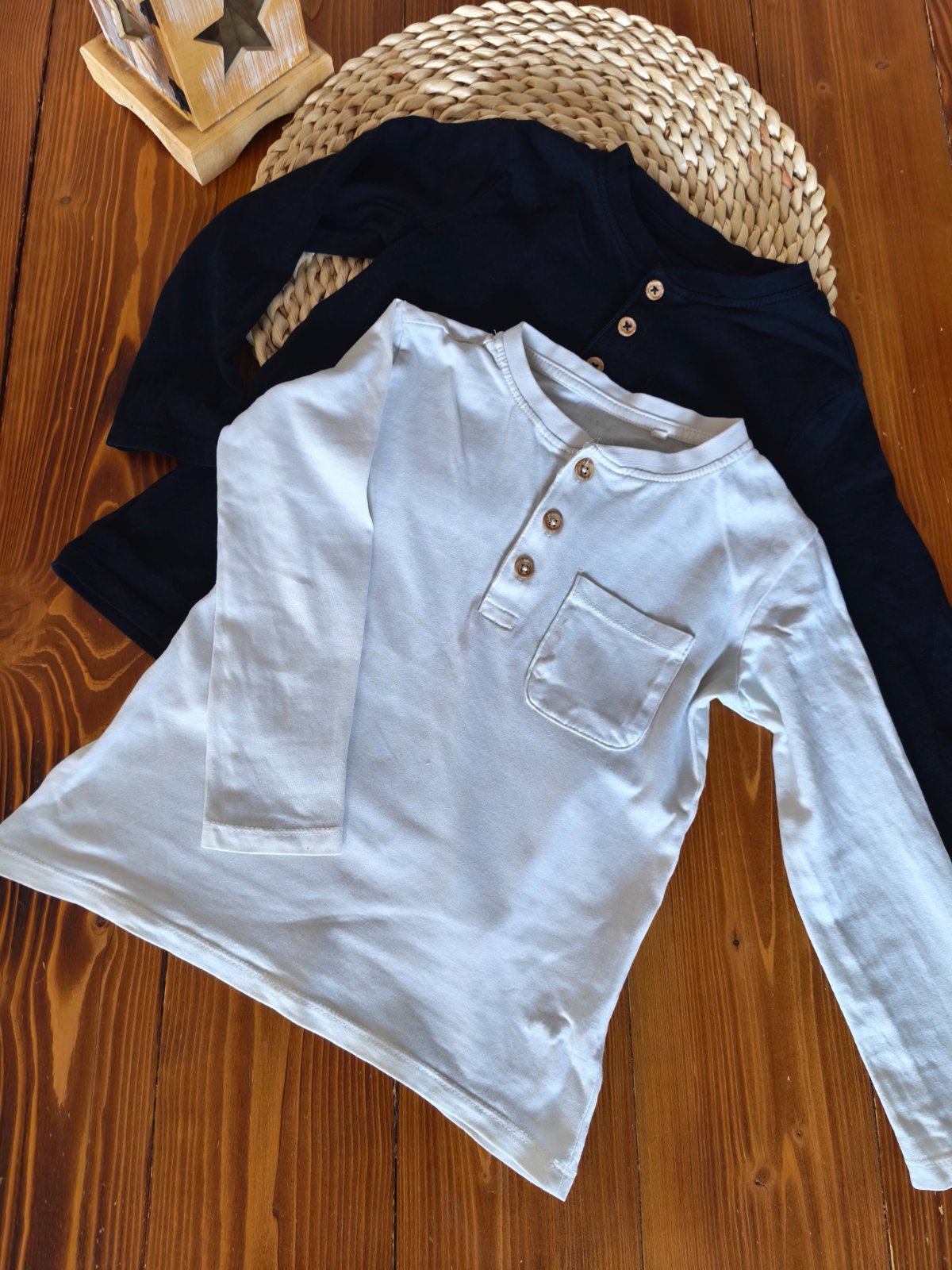 Predám bavlnené tričká s dlhým rukávom, krásne sýte farby, nosené jedným dieťaťom v top stave. Veľkosť uvedená 110, ale keďže je to sinsay, tipla by som skôr veľkosť 104. Na dĺžku majú tričká od kr...