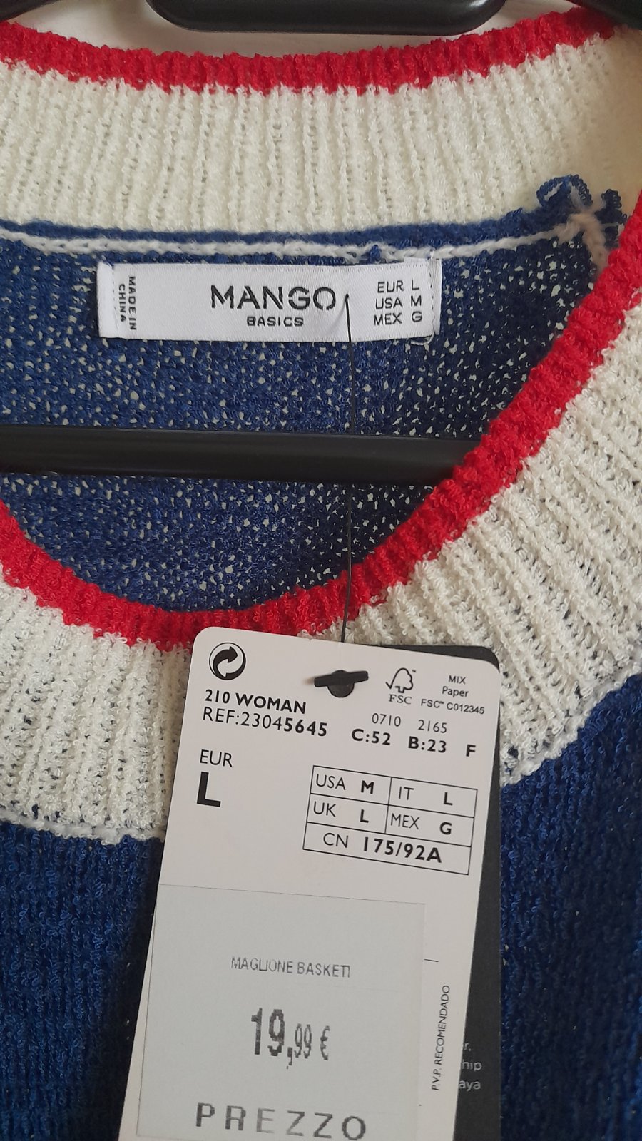 Krásne nové tricko nenosené, krasna kombinácia modrej,bielej ,červenej ...veľkosť L ale ja nosím M...kupene v Taliansku....
