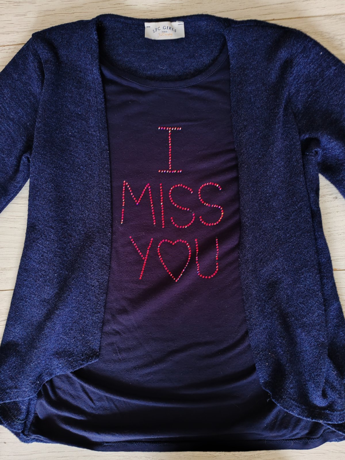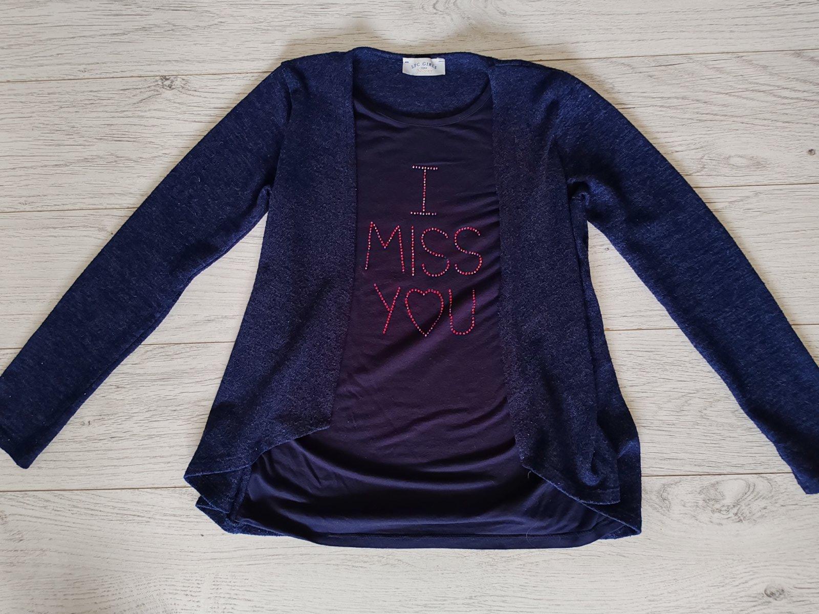 Predám tričko pôsobiace, že na ňom je svetrík. Veľkosť cca 152. Celková dĺžka od ramien je cca 57cm, šírka pod pazuchami je cca 38, dĺžka rukáva je 53cm. Materiál je naťahovaci.