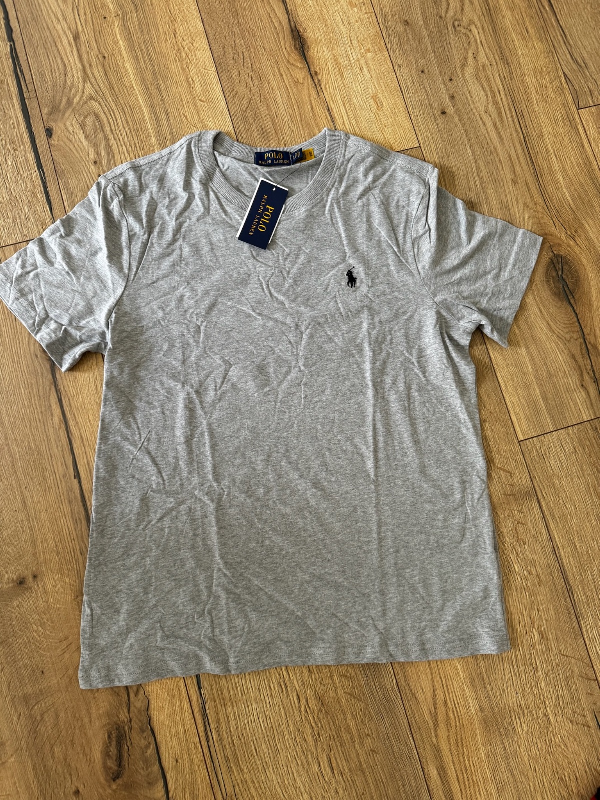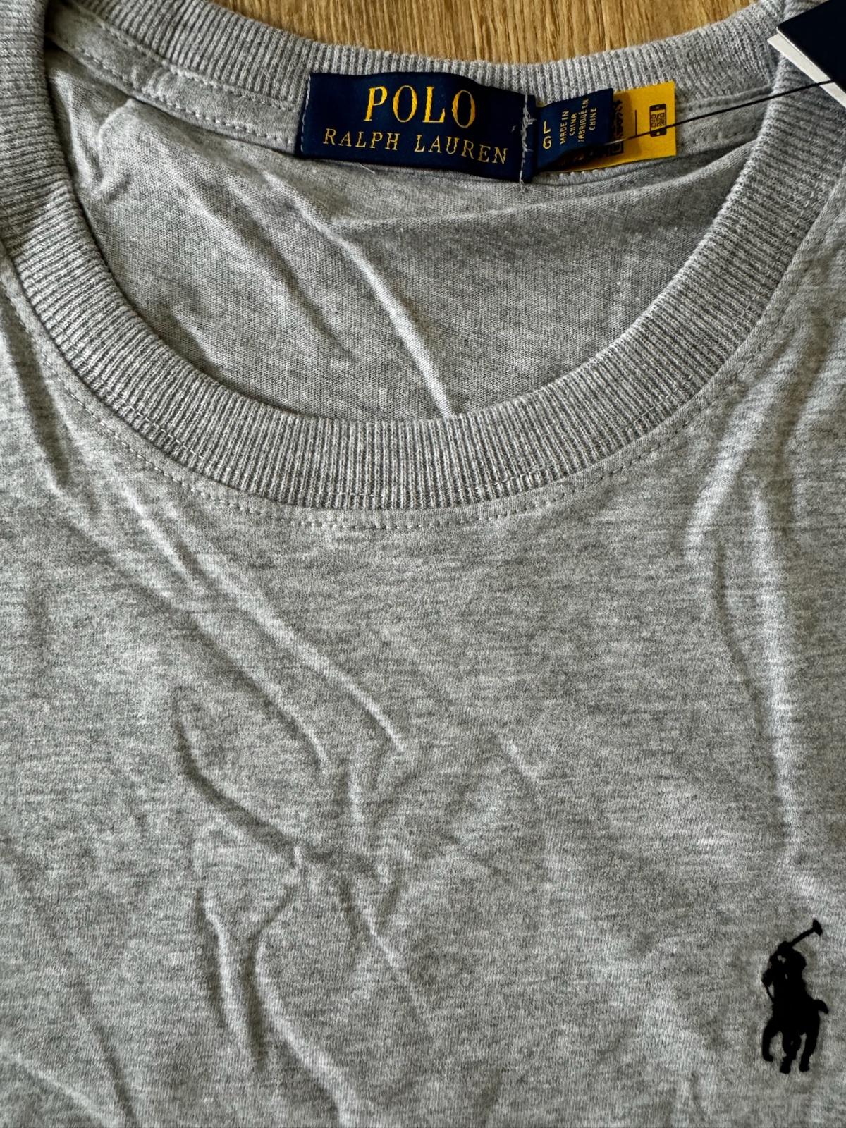 Nové, nepoužité, originál RL, kvalitný a veľmi príjemný materiál, dovoz DE, farba sivá, veľkosť L, rozmery - šírka pod rukávom - 53cm, dlžka - 69cm, materiál bavlna.