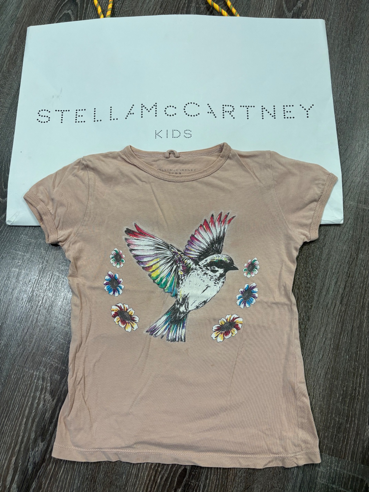 02.Stella McCartney tričko tejto drahej dizajnerskej značky, velkost je 128 , sem tam svetly mini fliačik, dlžka je 44cm, širka v podpazuší je od 35x2cm do 41x2cm