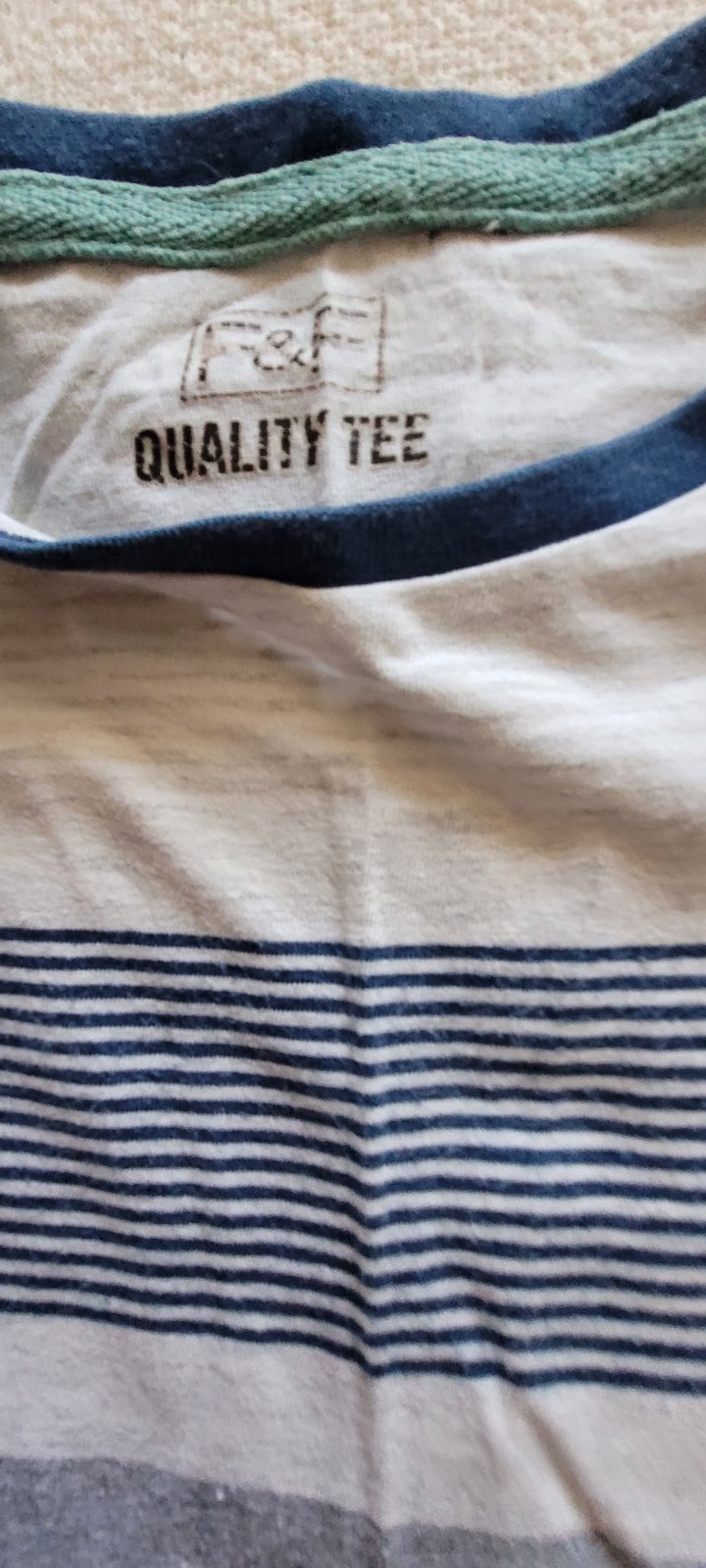 F&F – tenké prúžky – prevláda šedá farba – 10-11 r.