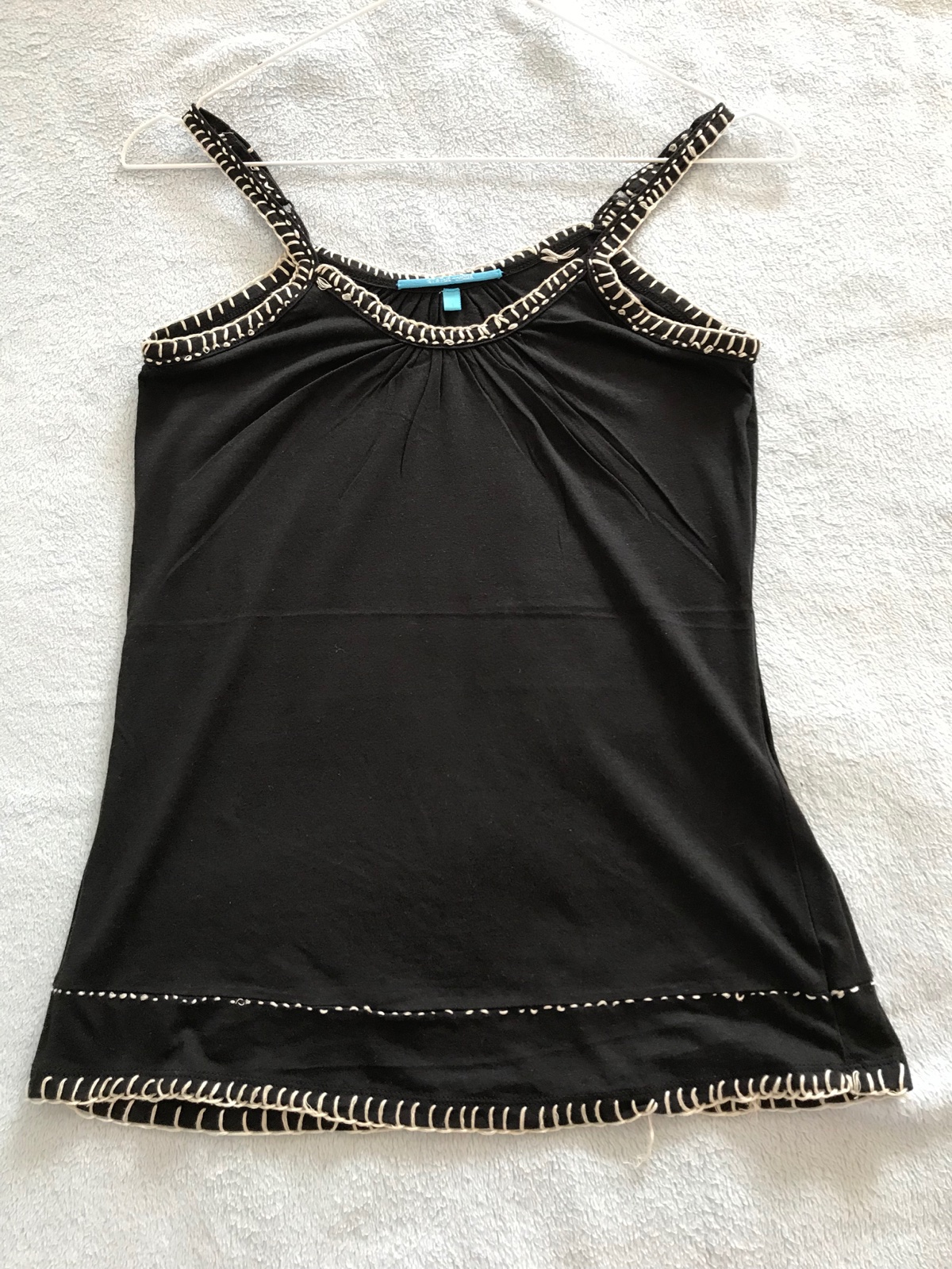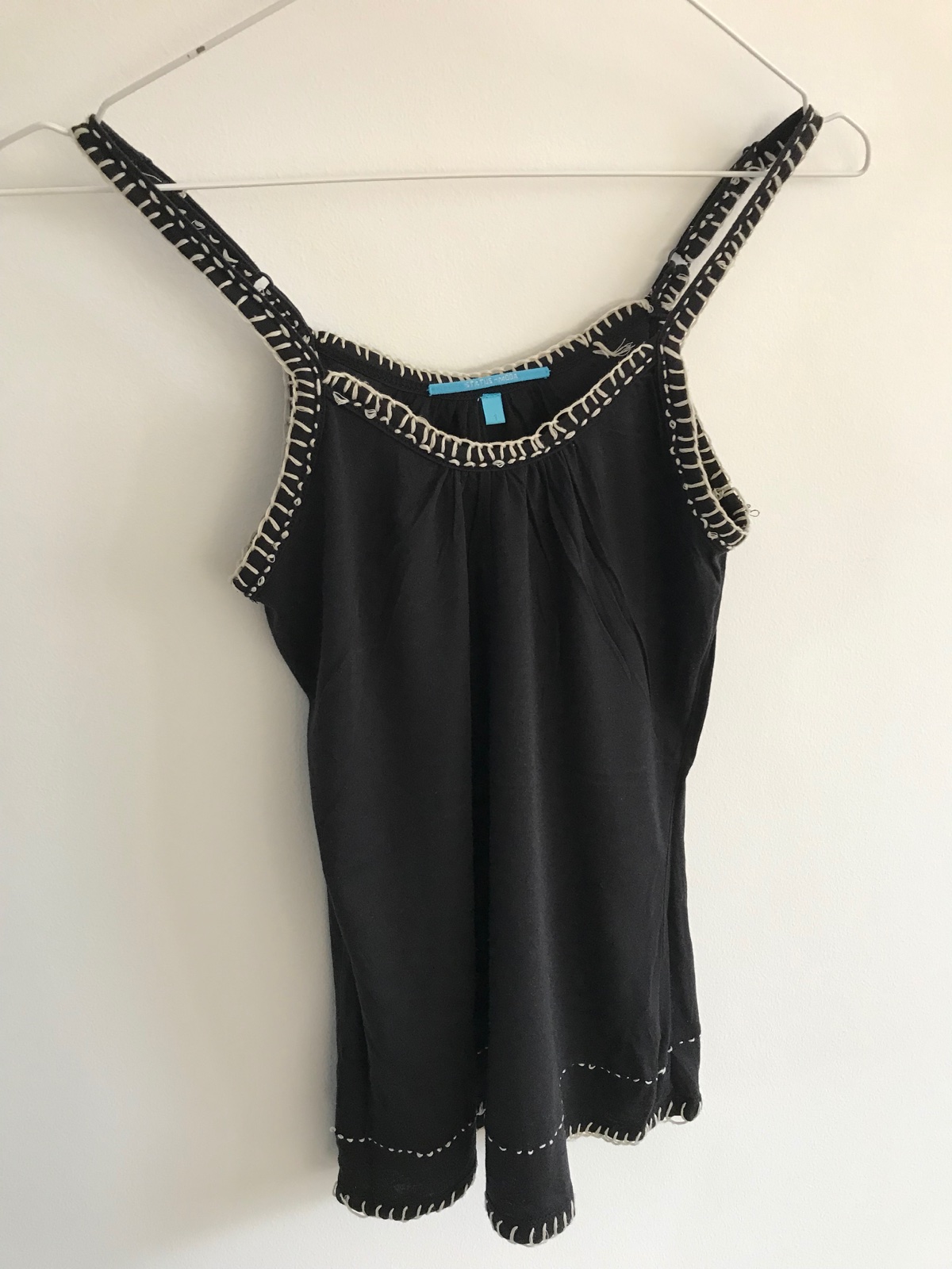 Vzdušné čierne tielko s posuvnými ramienkami. Ľahký materiál. Veľkosť S/M.