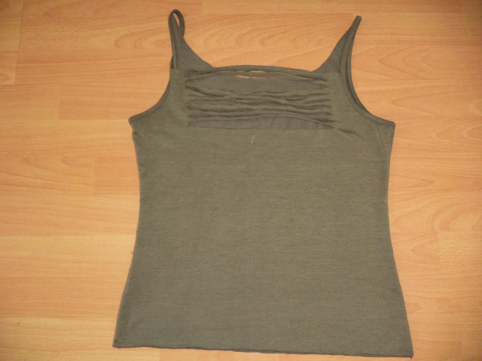Predám dámsky top olivovej farby. • dĺžka – 62cm • obvod pŕs – 110cm • šírka ramena – 10cm