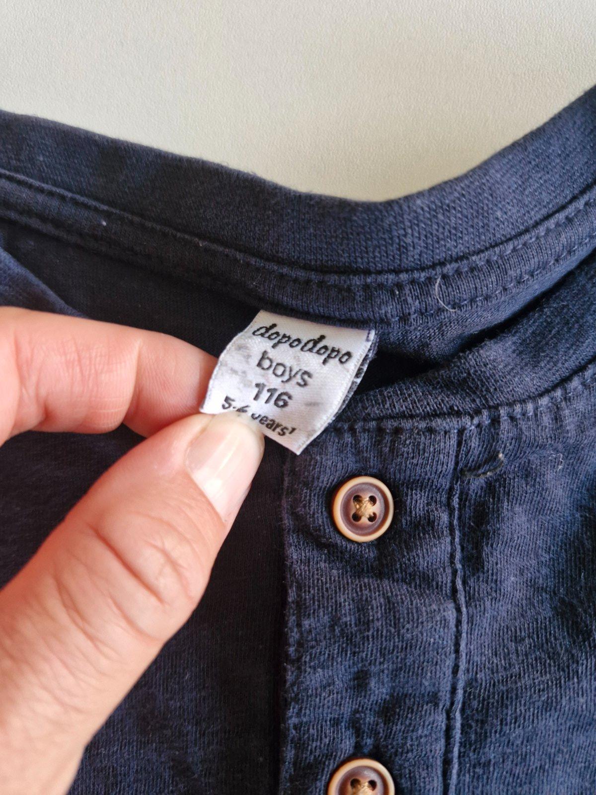Predám tmavomodrú polokošeľu, nosenie trošku vidieť na farbe. Značka Dopodopo, veľkosť 116. Rozmery: dĺžka 47cm, šírka 32 cm, rukáv 19cm, od ramena 13cm. Kuk aj na ostatné veci v mojom bazáriku, uš...