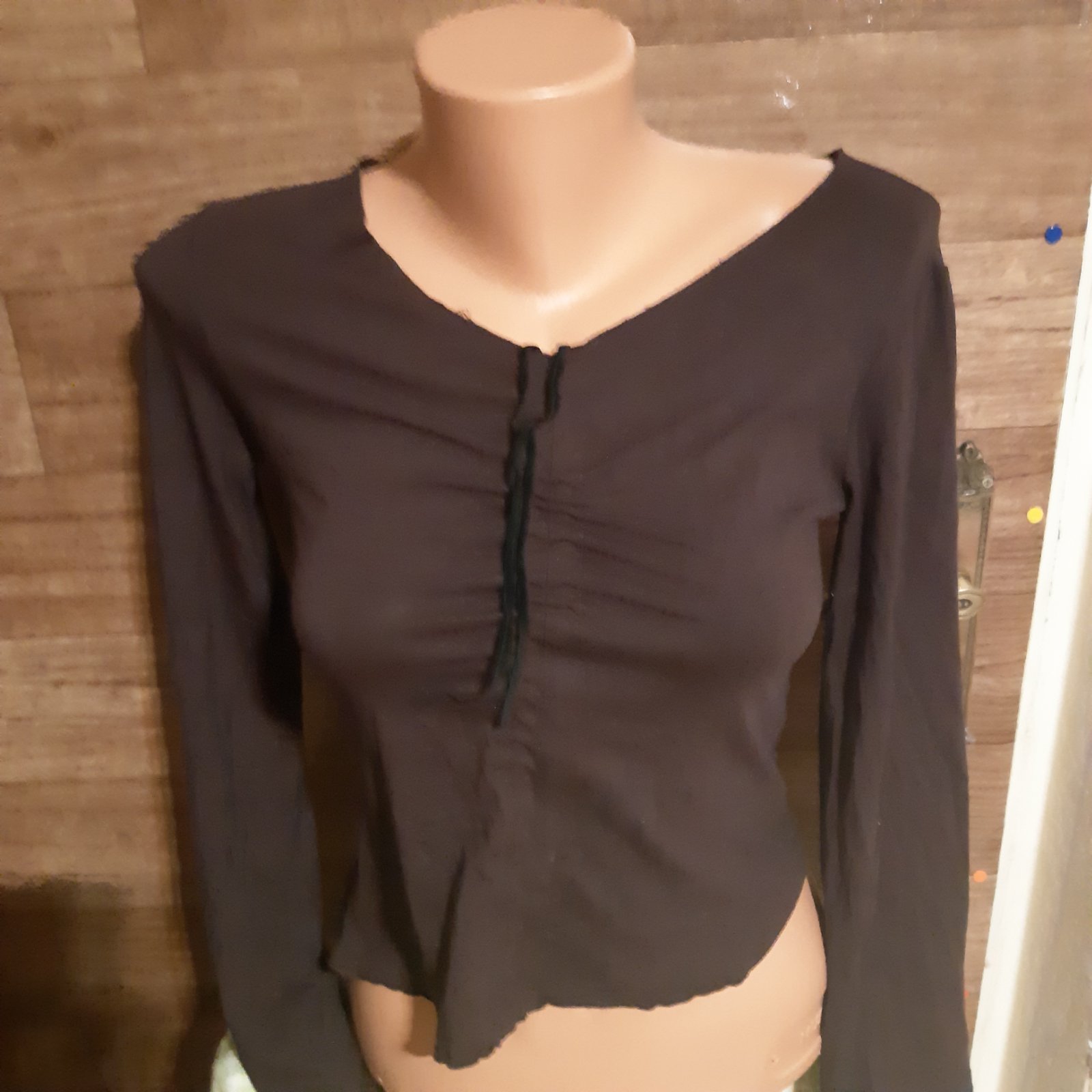 Predám tričko v dobrom stave v predu na vrchného časti sú také ako stuhy si sa da potiahnuť a tim sa to ta predna časť zriasi