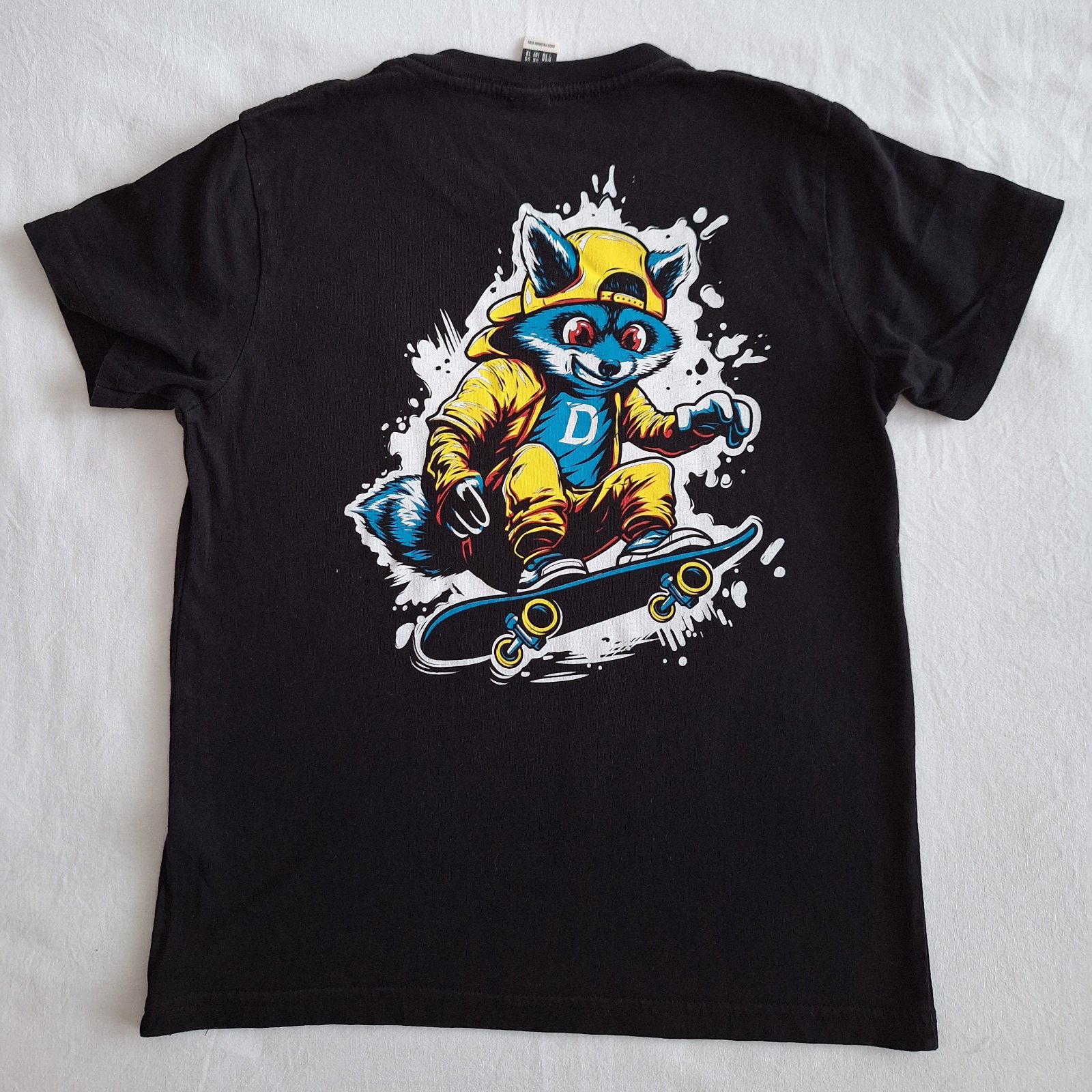Tričko je v super stave, bez poškodení. Vôbec nie je vyblednuté, vyšedivené. Dcéra ho mala iba raz oblečené. Farba je krásna, sýta čierna, len sa mi to nedalo lepšie odfotit. Také isté aj v ružovej...